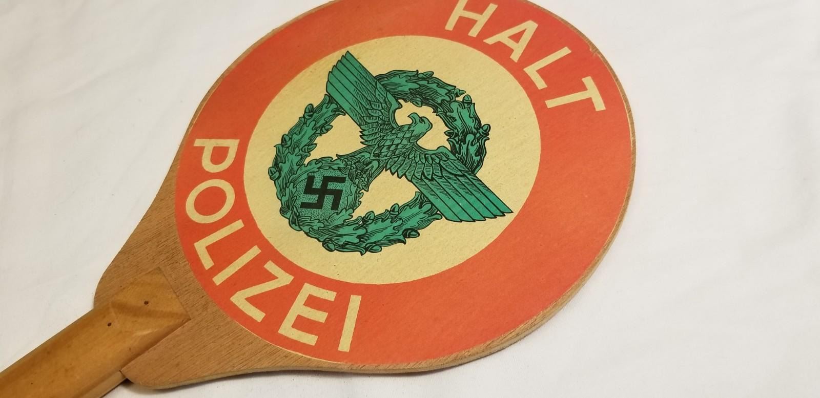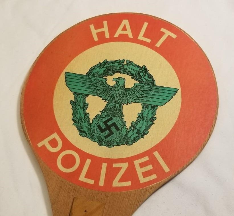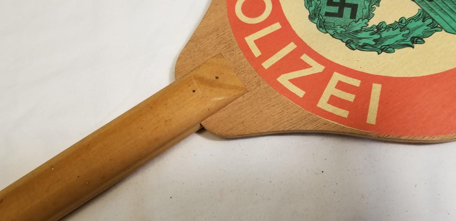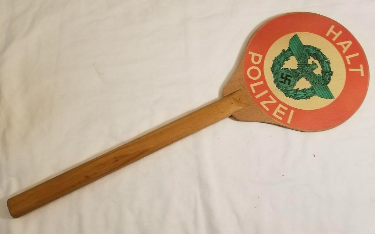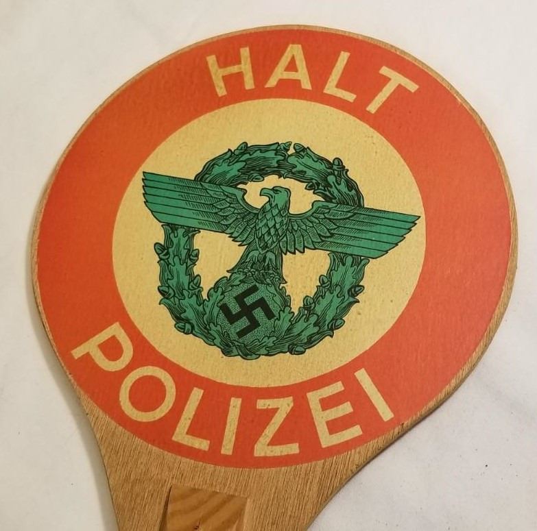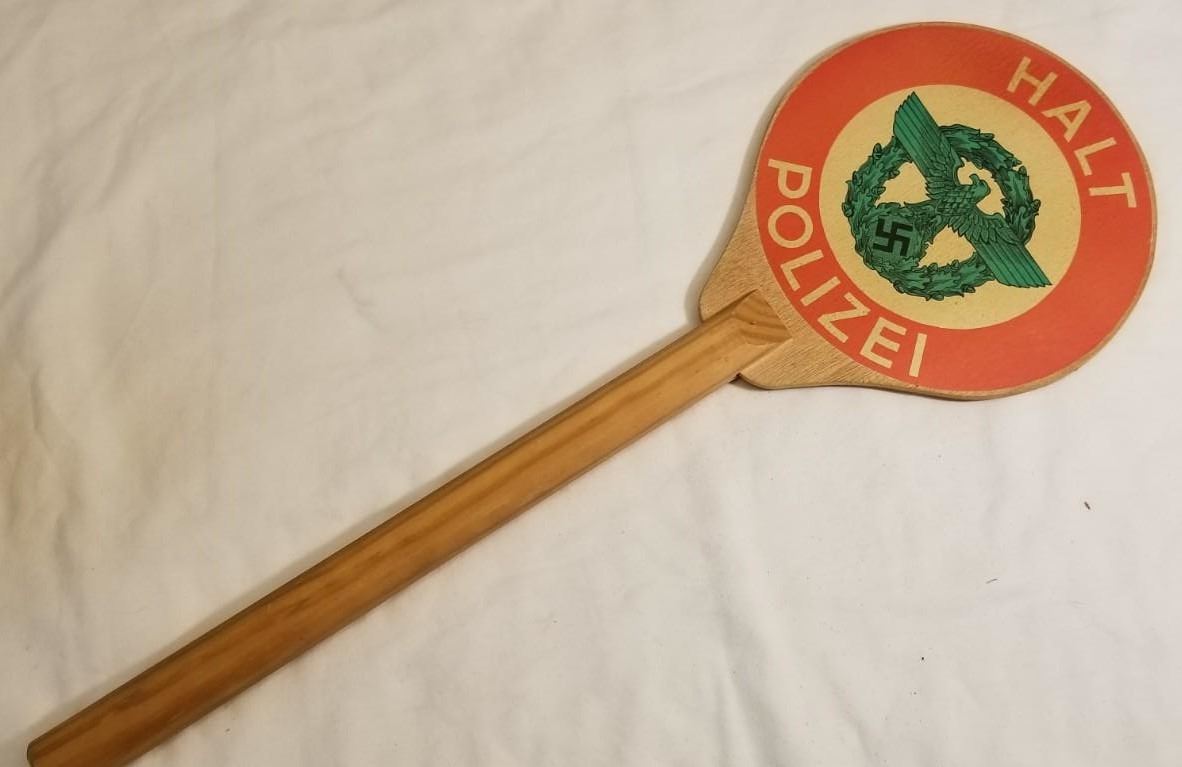 WW2 WWII Nazi German Third Reich Police Polizei Paddle Halt stop sign. Nice Police paddle in VG condition with no black light glow. Nice display piece! Be sure and check out our other militaria and collectibles auctions for more items, we always combine shipping!