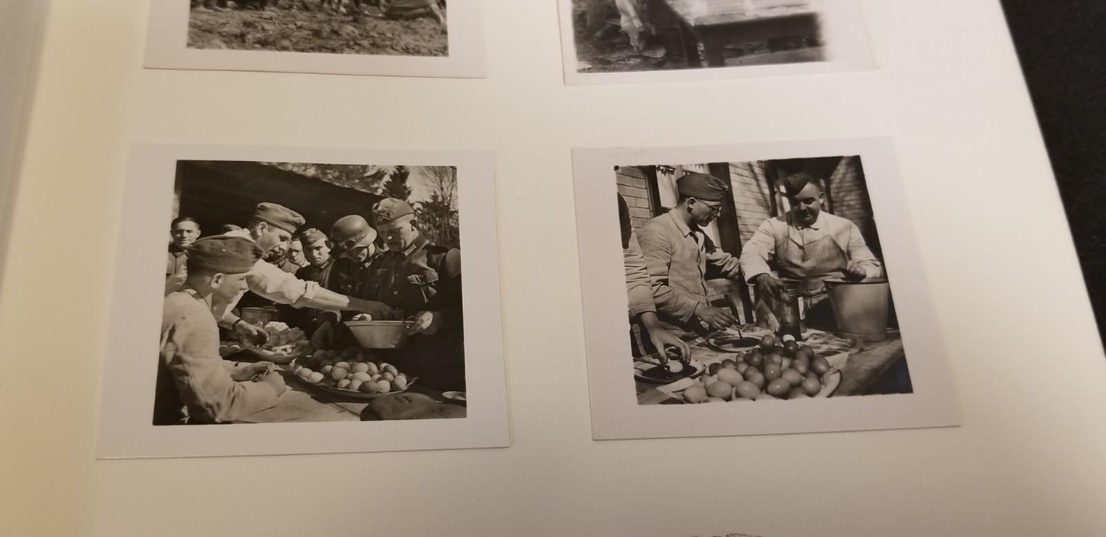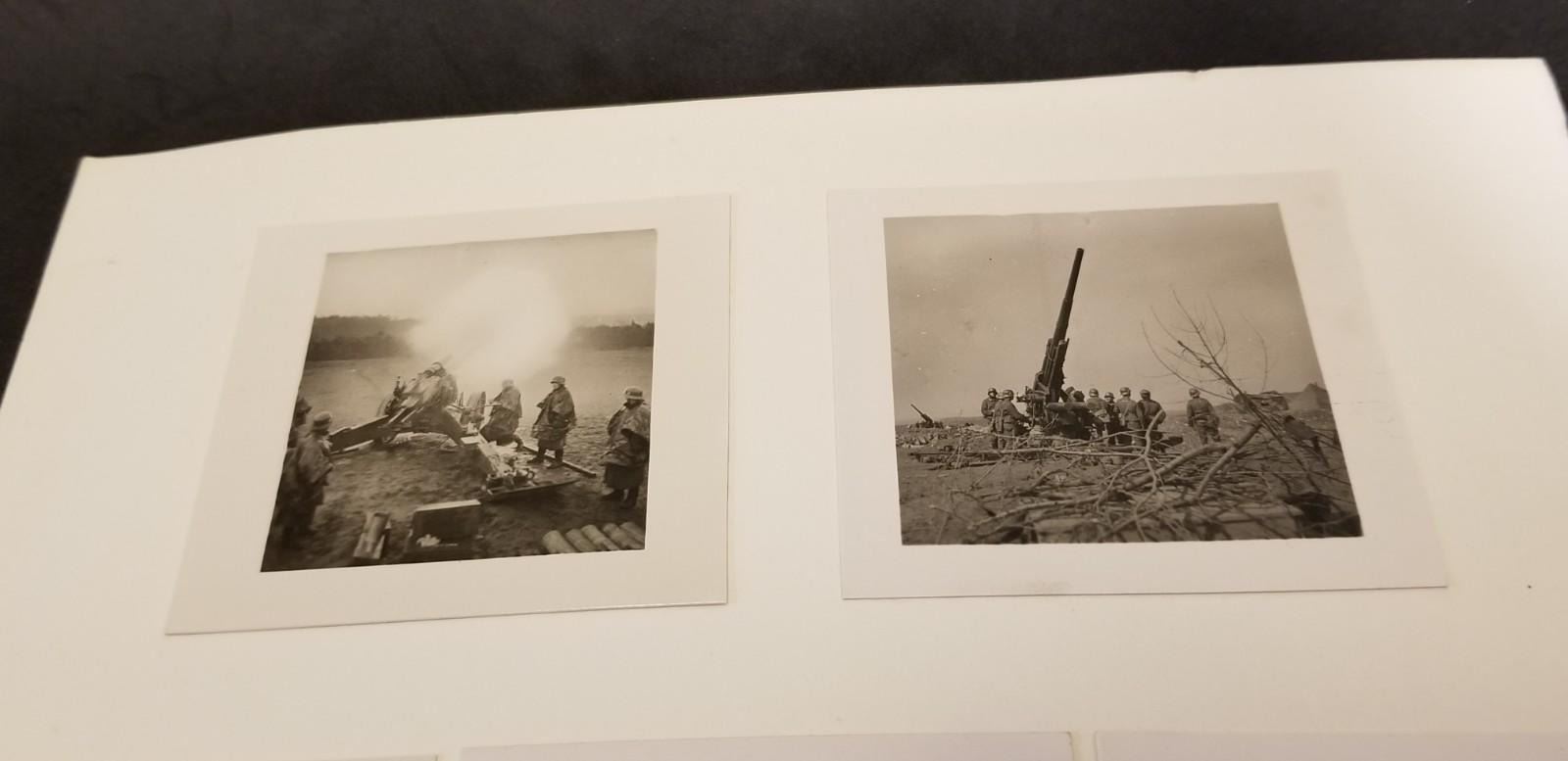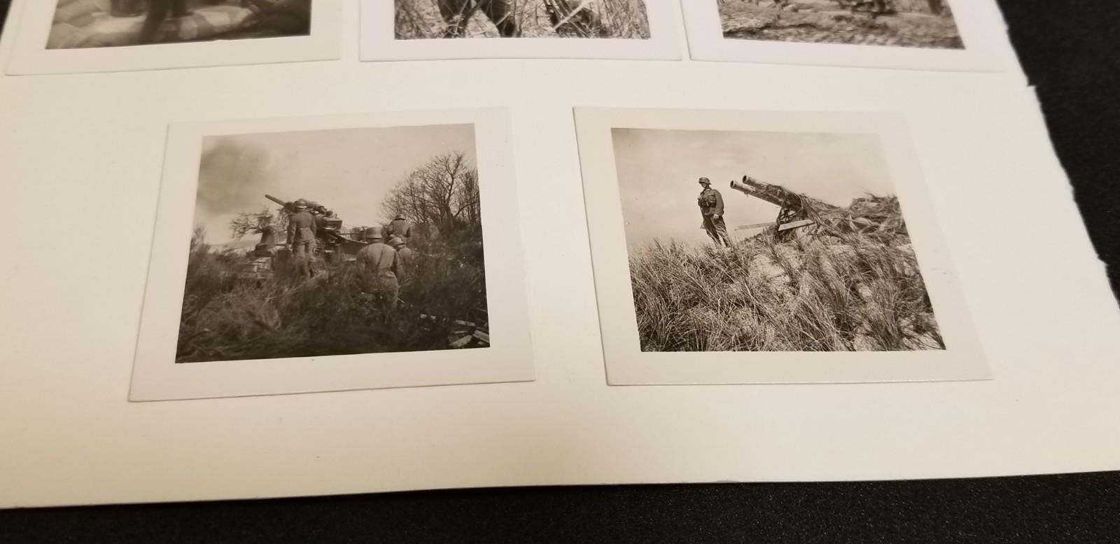 WW2 WWII Nazi German Third Reich Steel Helmet soldiers photographs 12 photos. Nice lot of 12 German steel helmet soldiers military photos. It is a page pulled from a photo album with some great content, flak artillerie in action! Soldiers at war, preparing meals and more. Each photo measures 2.5" square. Be sure and check out our other militaria and collectibles auctions for more military related items, we always combine shipping!
