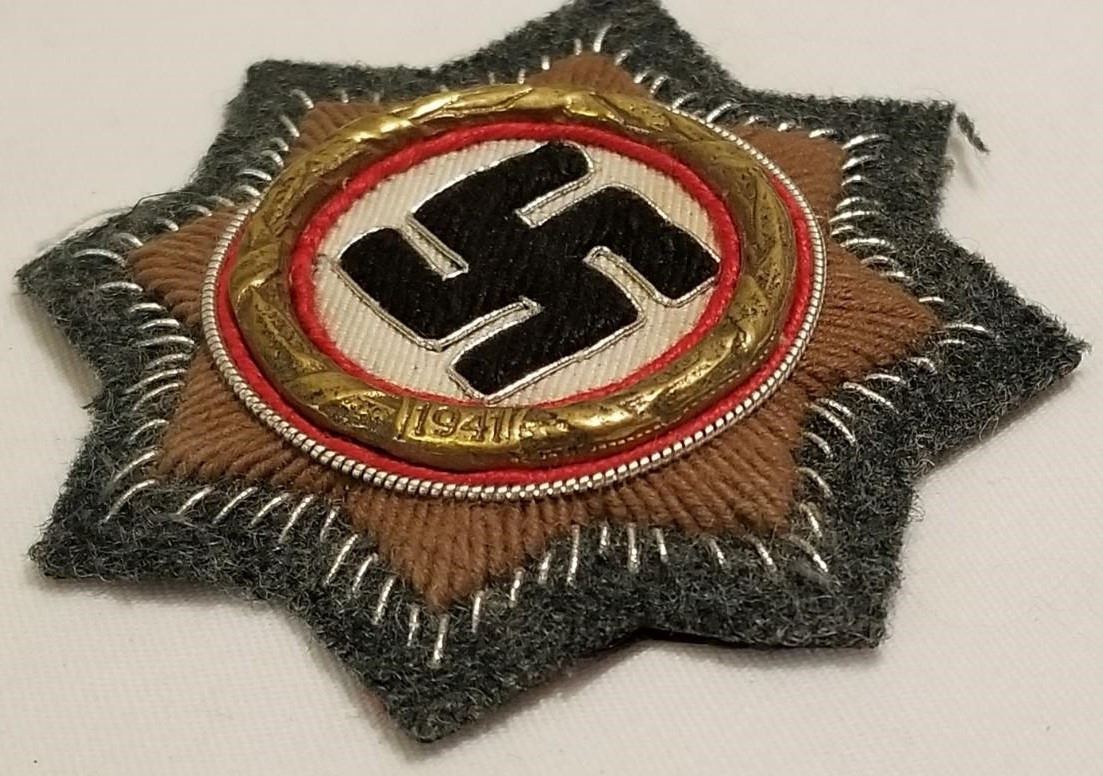 WW2 WWII Nazi German cross in gold Third Reich cloth Medal award. Nice German cloth/metal insignia in good condition. Be sure and check out our other militaria and collectibles auctions for more items, we always combine shipping!