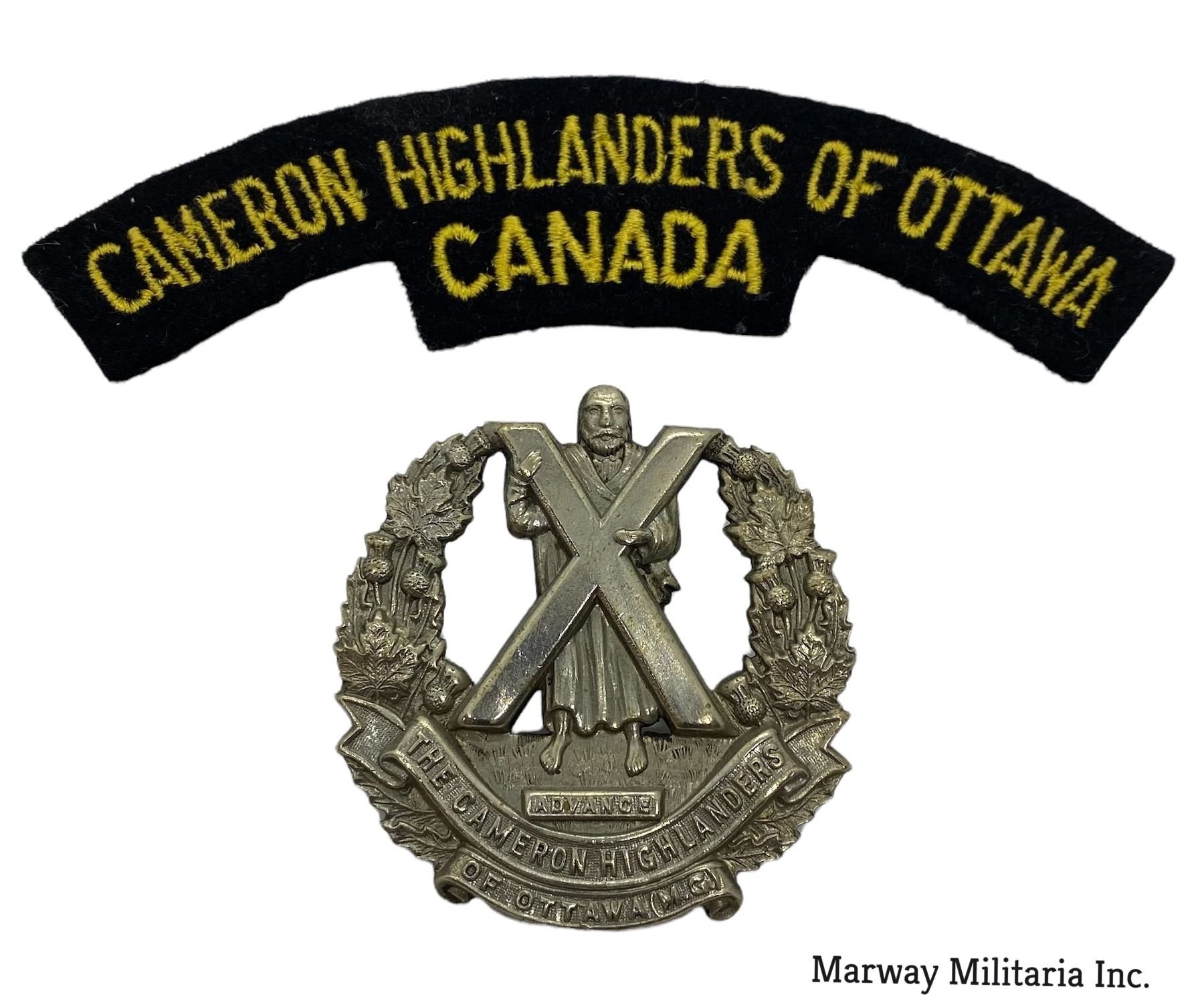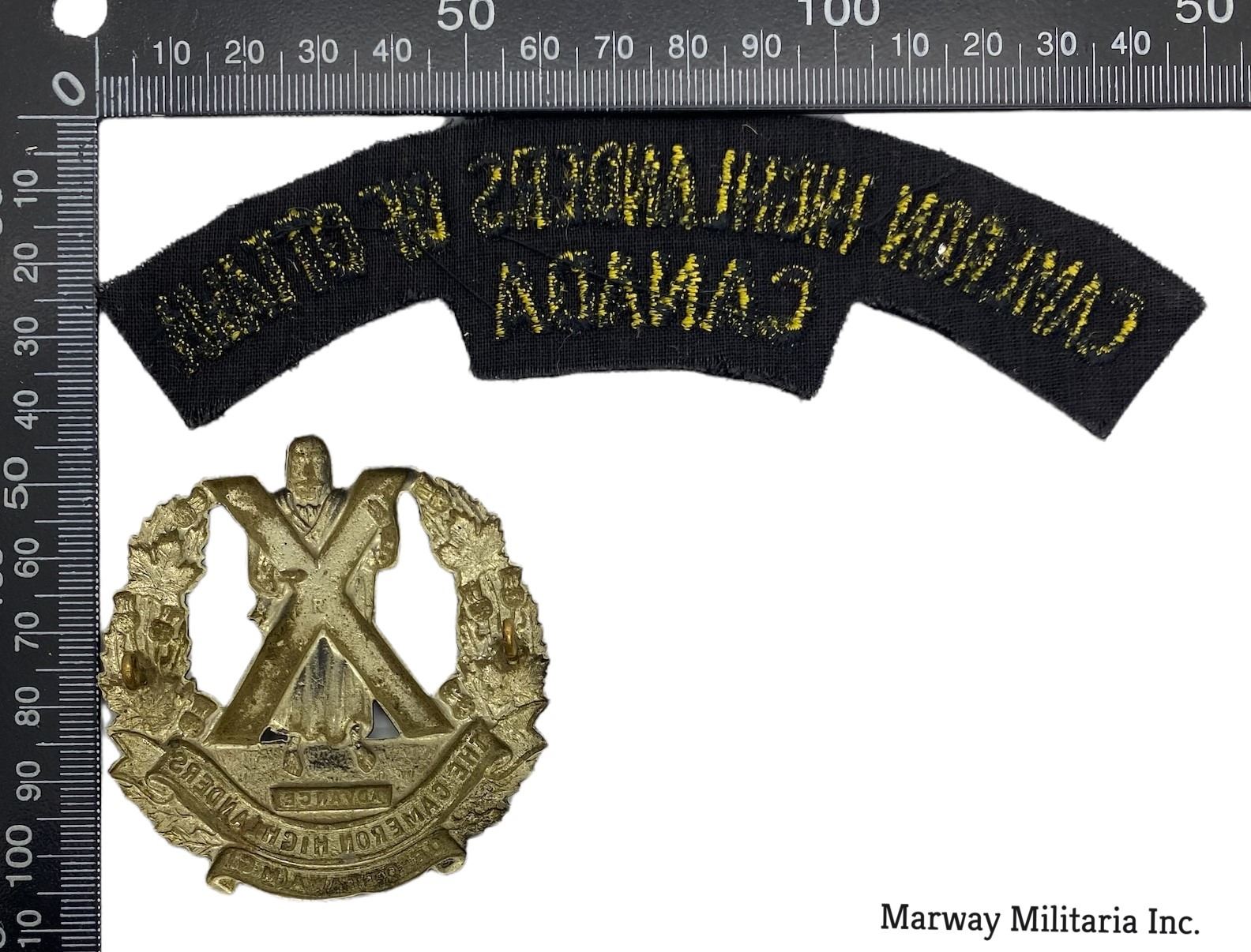 Lot of 2. Cap Badge is white metal, lug fasteners. Marked R for Roden. Cloth shoulder flash, likely postwar.