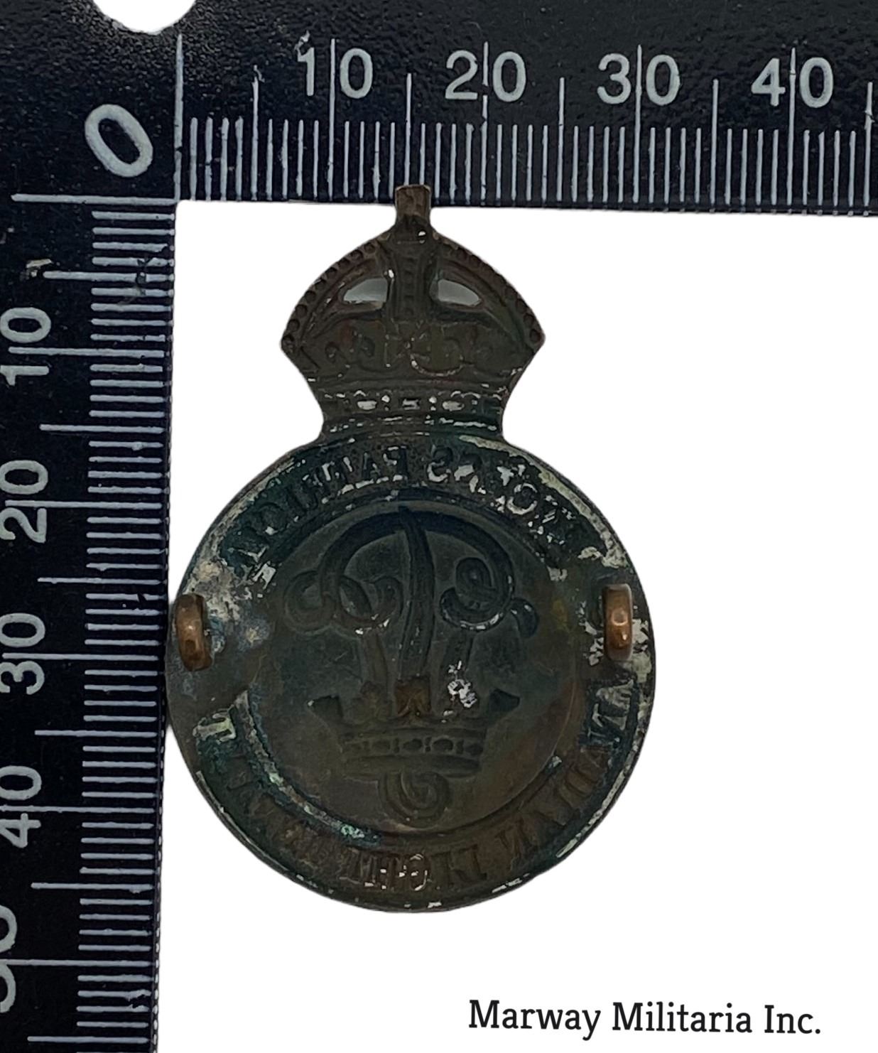 Princess Patricia's Canadian Light Infantry. Age toned metal. Appears that one lug was repaired long ago. Excellent Striking.