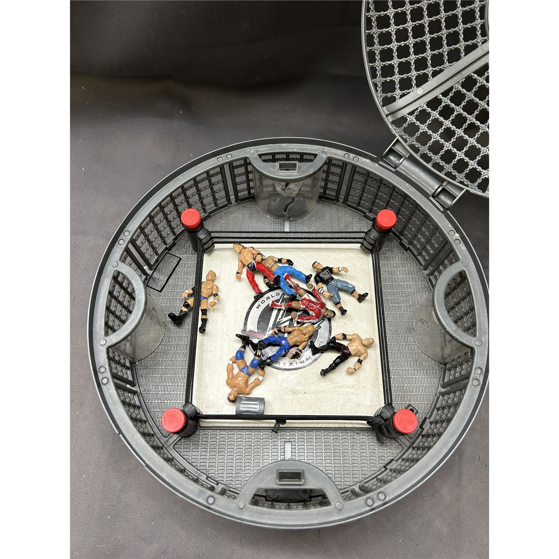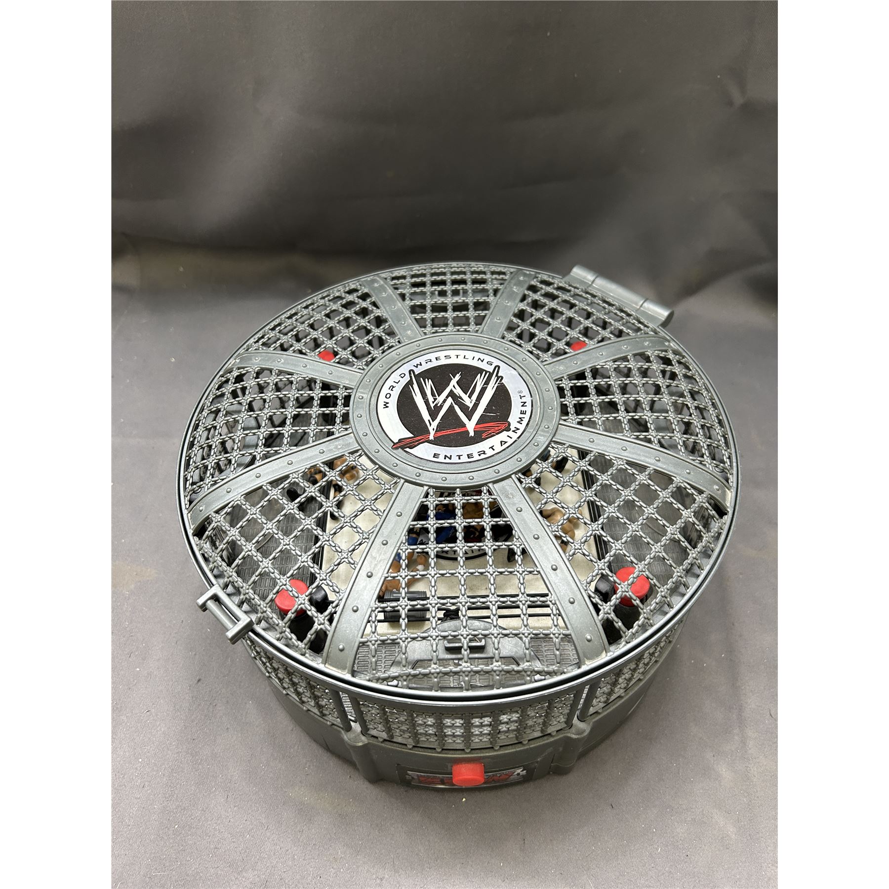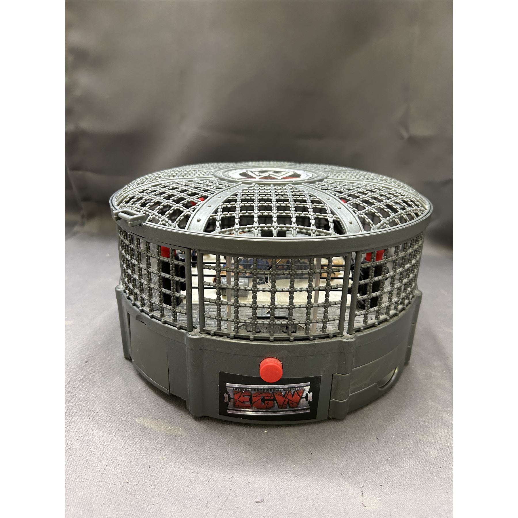 WWE Micro Aggression Crash and Bash Elimination Chamber Arena Ring Works near complete with ramp underneath etc. plus 8 Figures