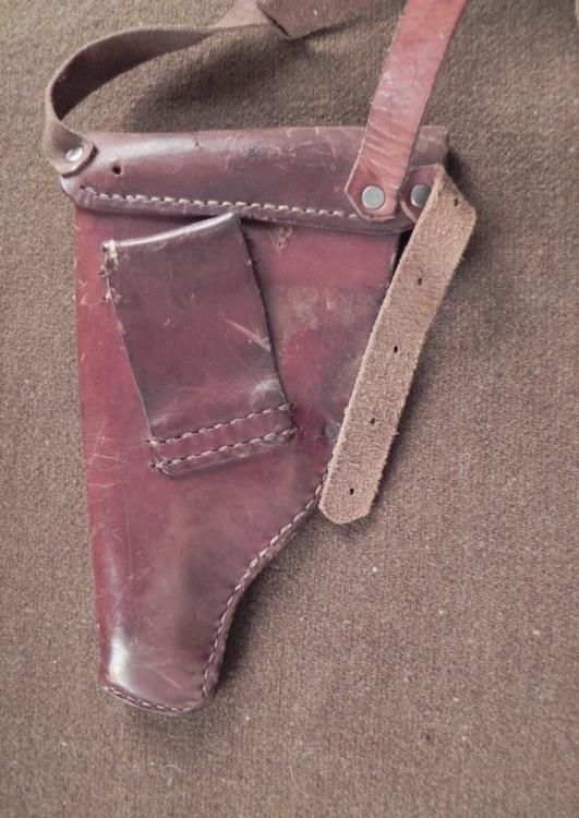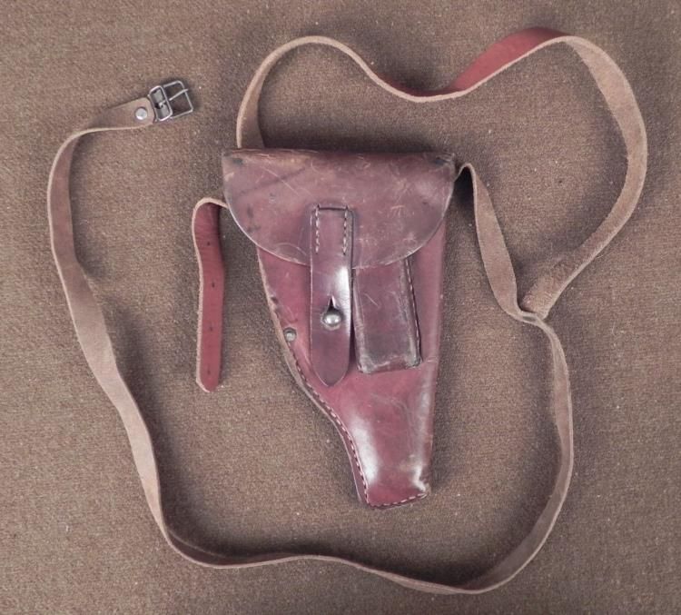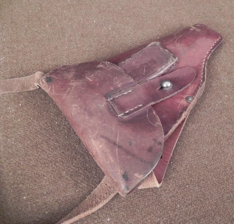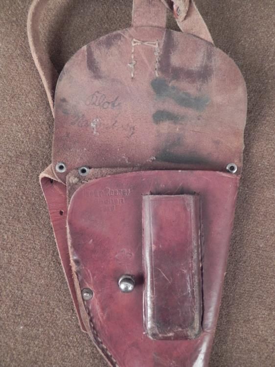 WWI 1918 GERMAN ARMY SHOULDER HOLSTER-COMPLETE BROWN LEATHER GERMAN IMPERIAL MILITARY OF WWI SHOULDER HOLSTER-RARE ITEM THAT HAD BEEN PERIOD CONVERTED FROM A BELT HOLSTER-LEATHER STAMPED "OSCAR ROSNER-MUNCHEN-1918" ALSO STAMPED IS AN IMPERIAL CROWN WITH