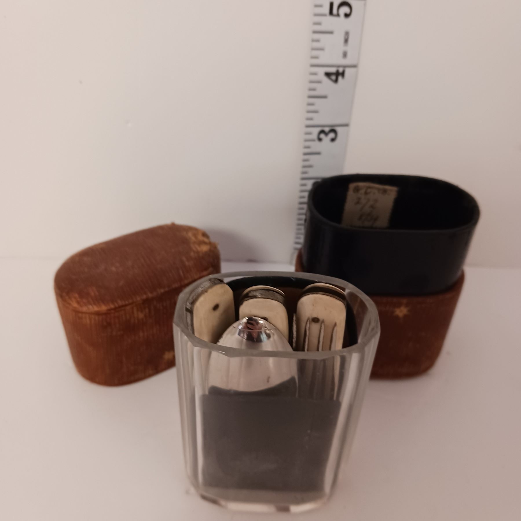WWI 1939 Folding Cutlery Set with Glass & Case, G C Co.