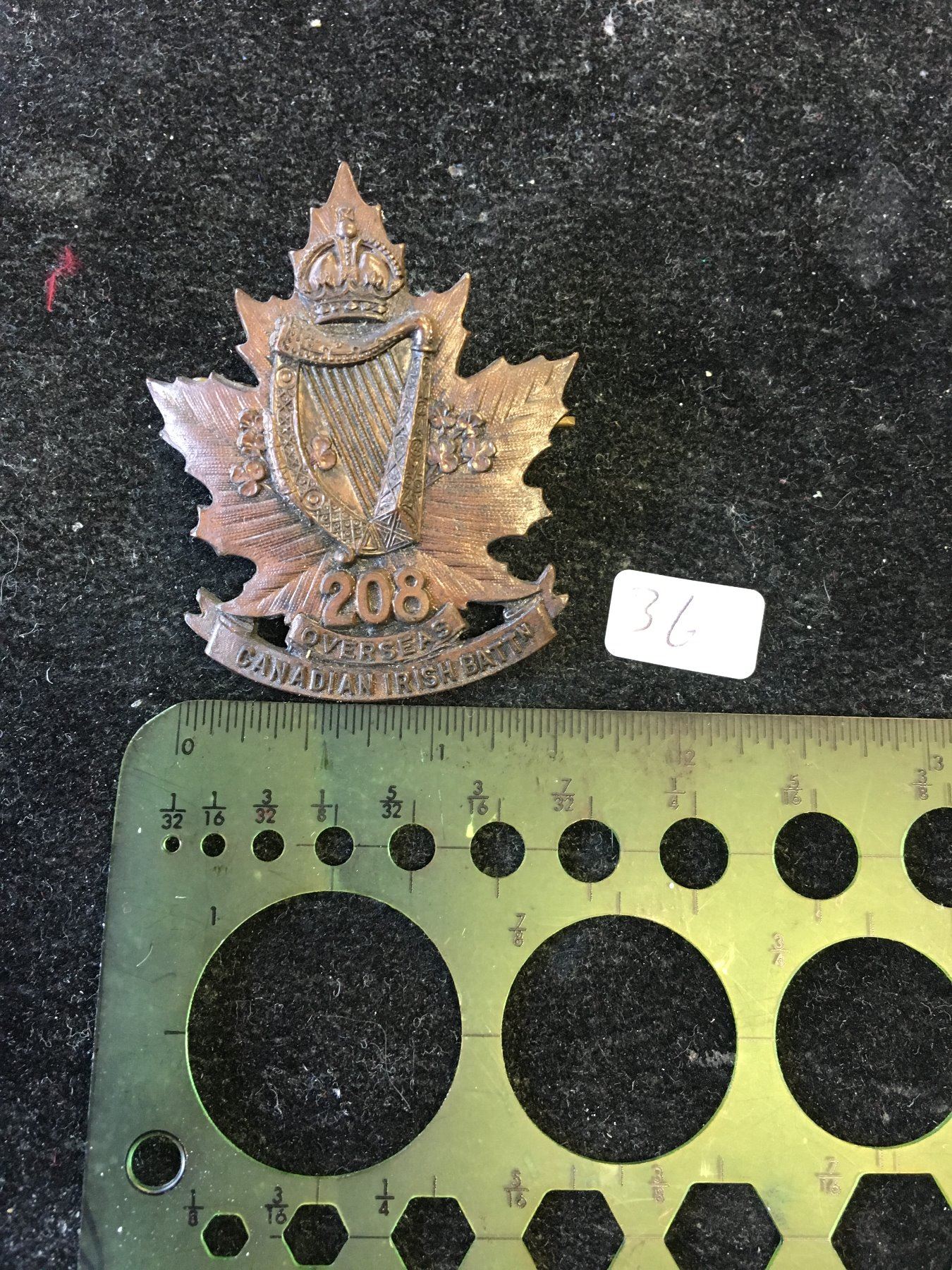 WWI 208th OVERSEAS CANADIAN IRISH BATTALION! RARE CAP BADGE