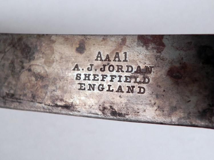 WWI BRITISH MILITARY KNIFE-MARKED "AAA1-A.J. JORDAN SHEFFIELD ENGLAND * 11" O/A LENGTH---6 1/2" BLADE *