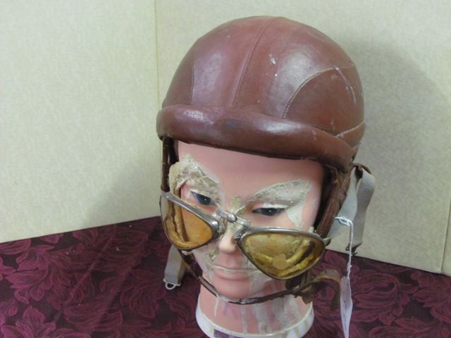 WWI Brown Leather Flight Helmet with Goggles