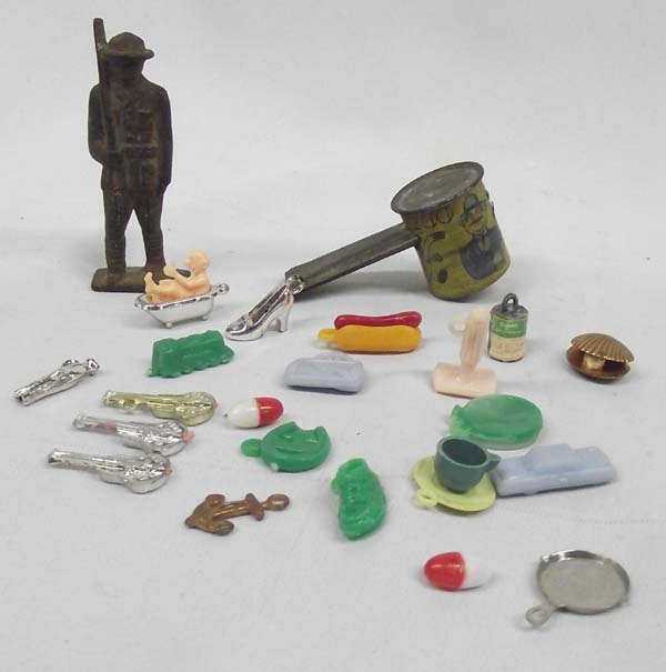 WWI Cast Iron Soldier Plus Toys. Kazoo, cracker jack and gum ball favors. Soldier measures approx. 3''H. Buyers Pay Actual Shipping and Handling Charges(see terms and conditions for more information).