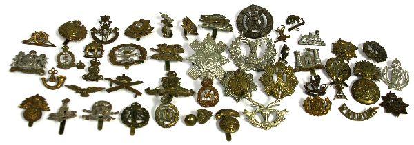 A grouping of original British WWI cap badges. Six are missing at least one lug the rest are as issued. Part of a WWI Canadian veterans original collection. Variety of Corp and Regimental badges.