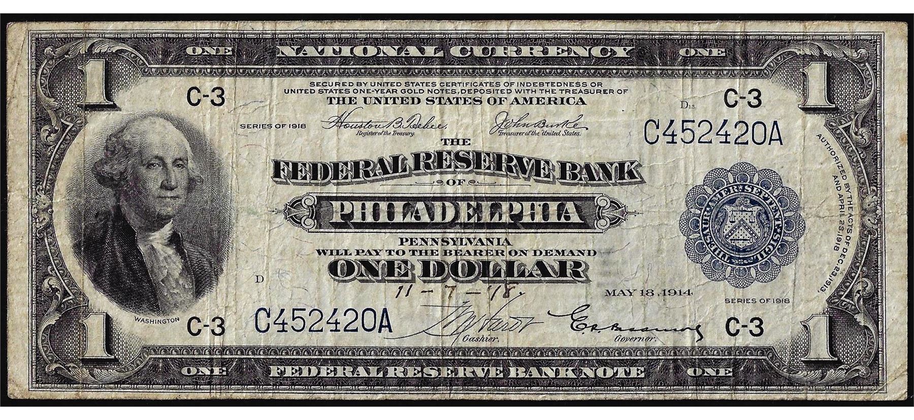 One WWI Ending Signed 1918 $1 Federal Reserve Note.