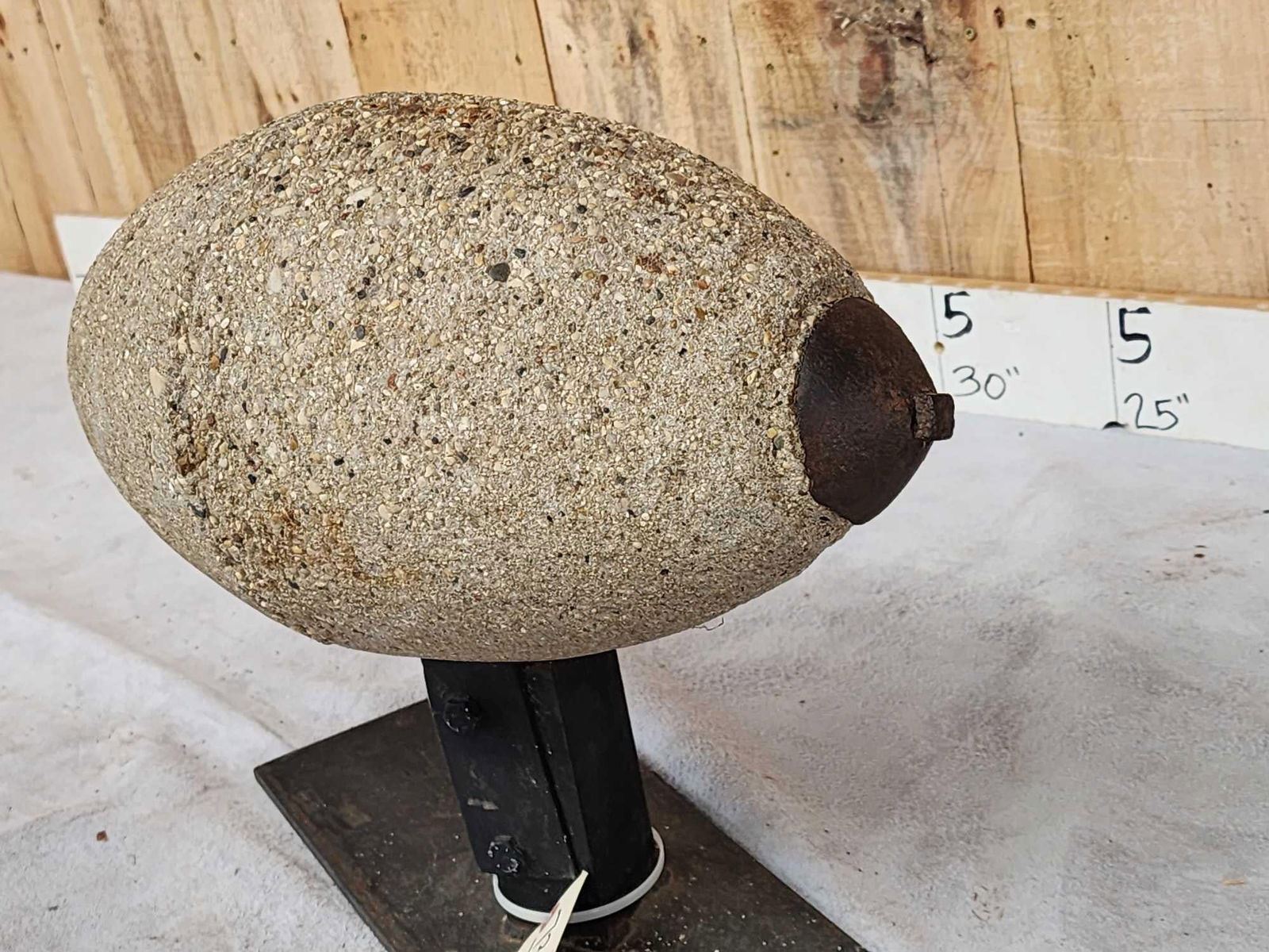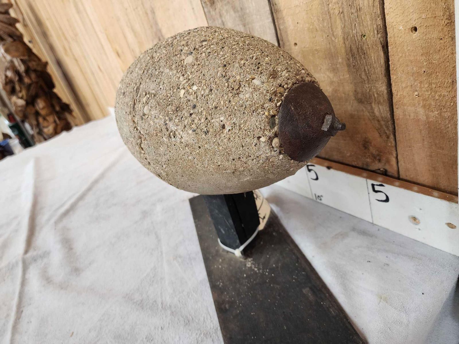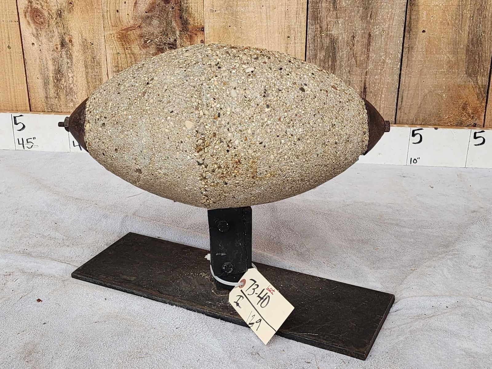 73.40 This particular style of windmill weight, often made of concrete and cast iron, was used in models like the Monitor Vaneless L mill.The use of concrete and cast iron in its construction might be attributed to wartime shortages of iron during the period when these were commonly produced, such as around 1918.