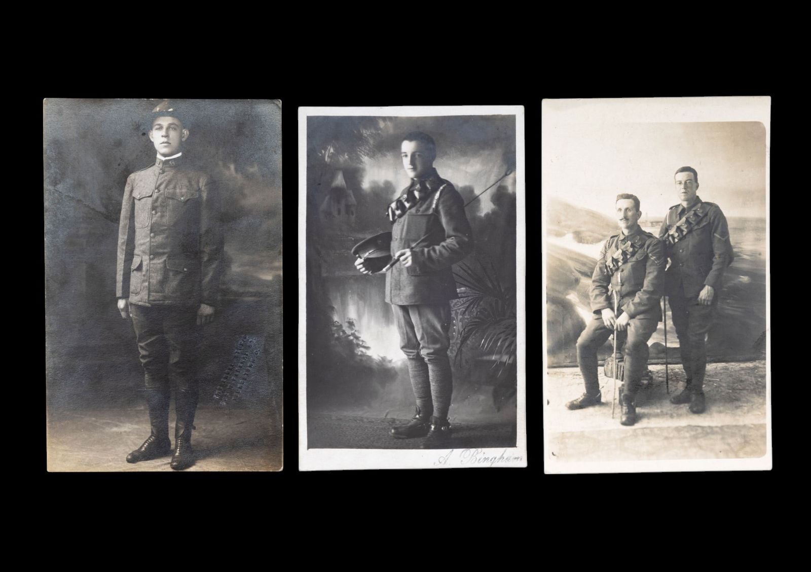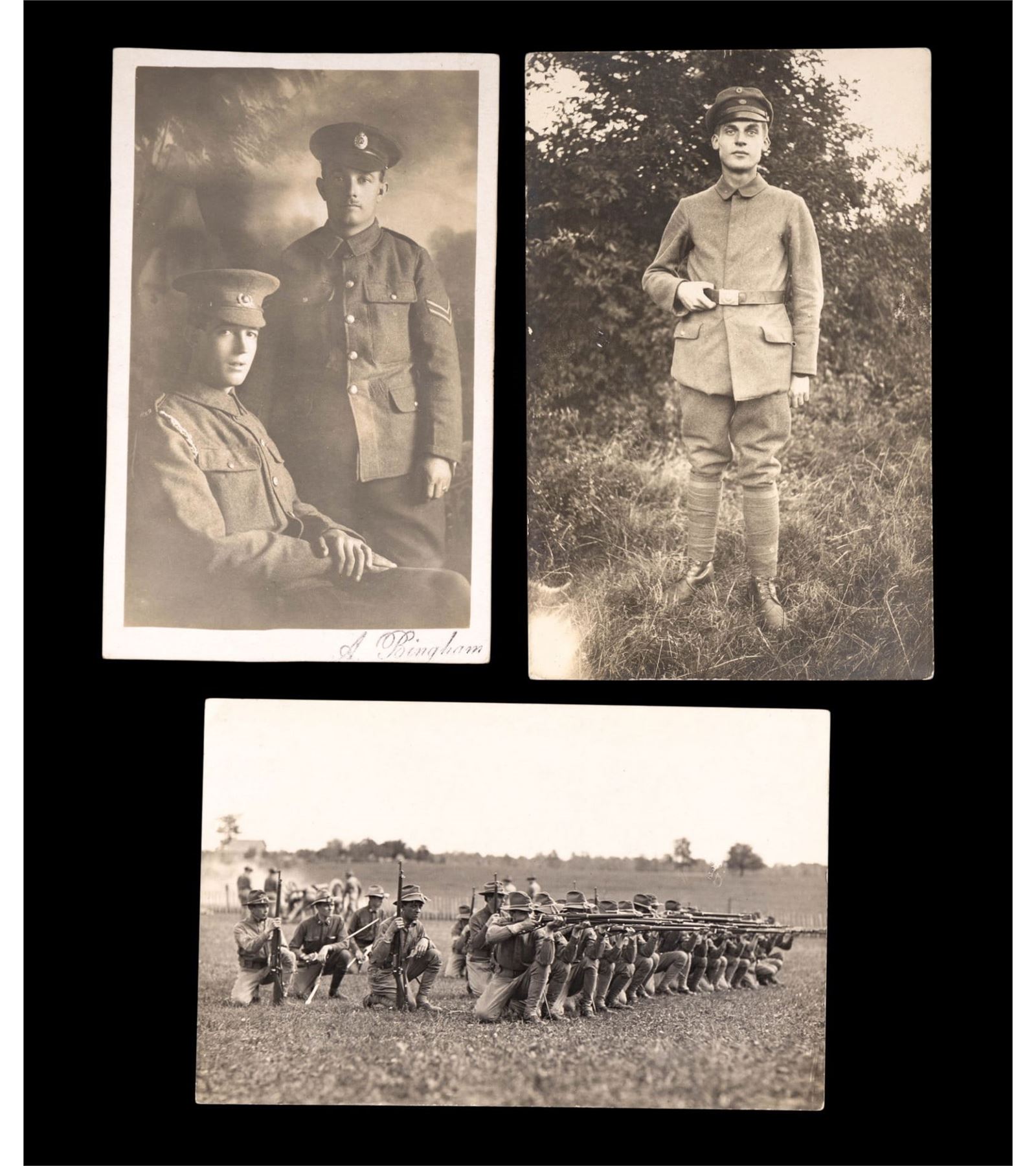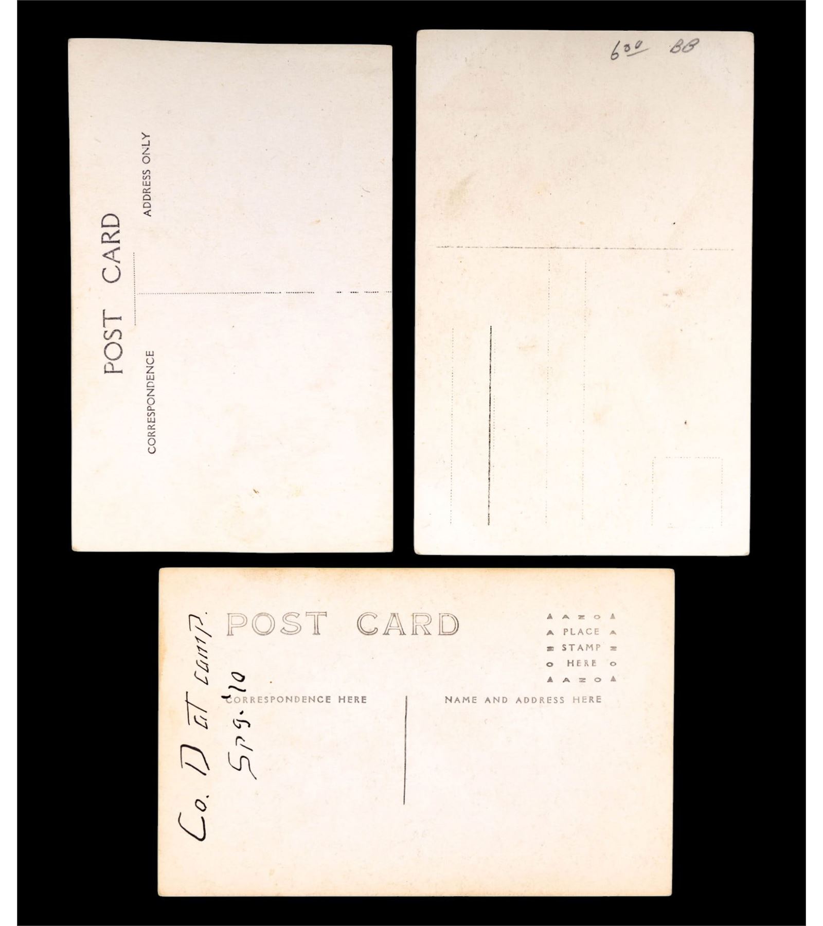 Collection of WWI era United States Military black & white photographs & photograph post cards, including portraits of soldiers in uniform, group photographs, & training photographs. Some post cards are signed and/or have notes written on the back. There are 41 total photographs. See photos for further details.