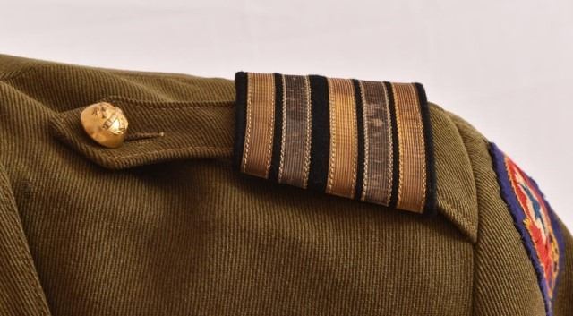 French Tunic for Lt. Colonel of Colonial Artillery. Legion of Honor (Fr), Croix de Guerre 1914-18 (Fr), Croix de Guerre 1939-45(Fr), Bronze Star (U.S.) Medal for Bravery(Montenegro/Yugoslavia).