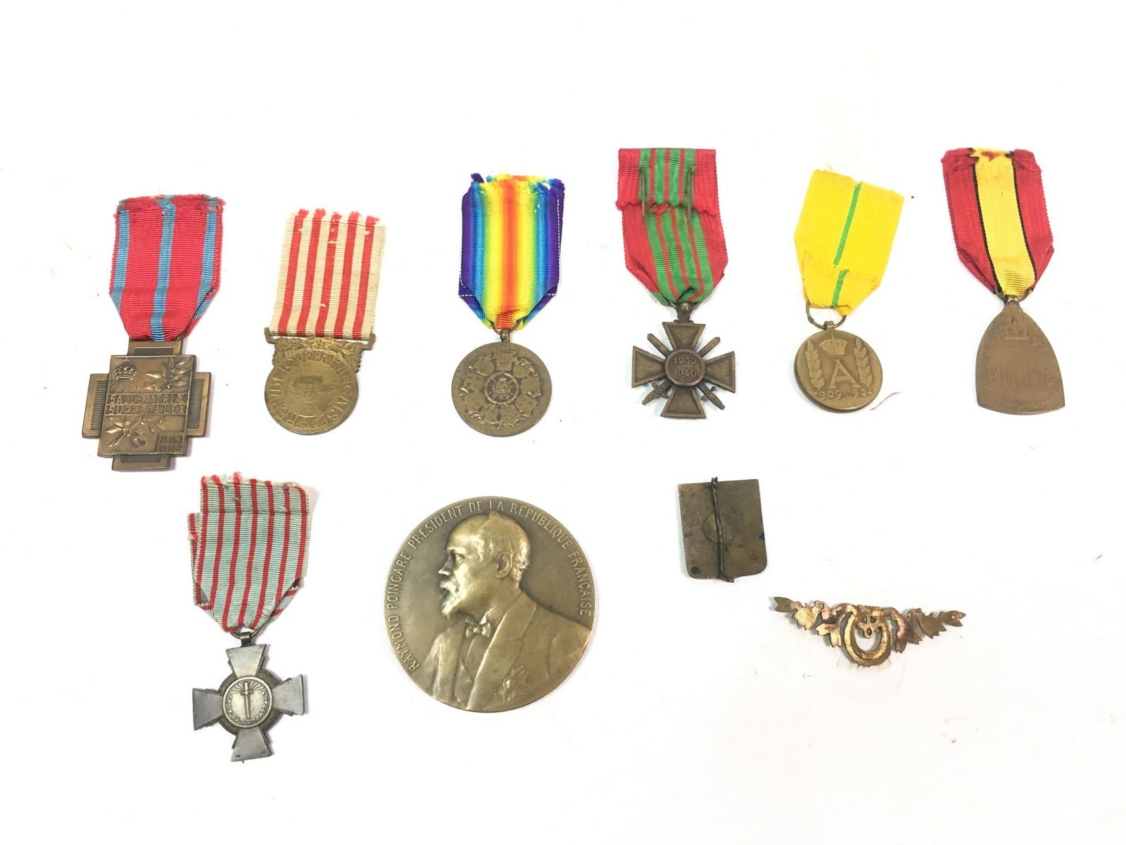Includes: WWI Commemorative Medal, in good condition, shows some wear. The Croix de Guerre, Marines, in good condition, has 2 stars & palm signifying multiple awards. Presidential Commemorative medallion Presidential from 1913Many others that are in good condition. Have some wear on them. Some discoloration & fading. Comes in display case!