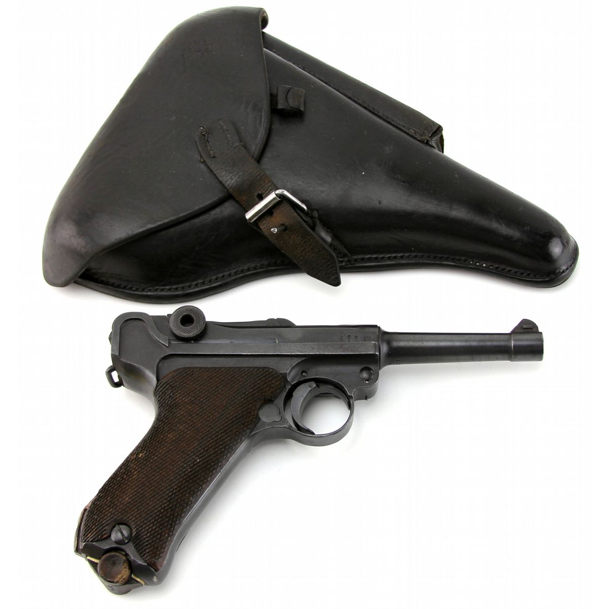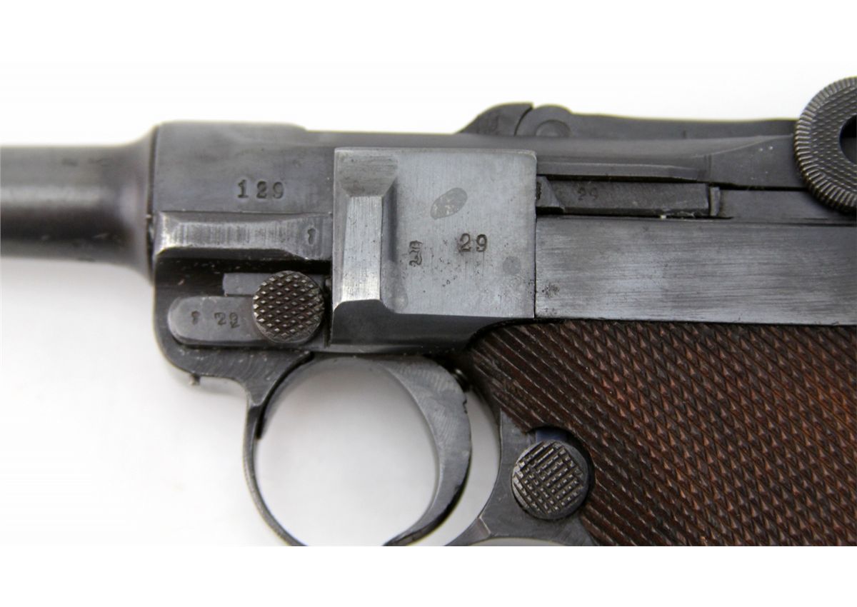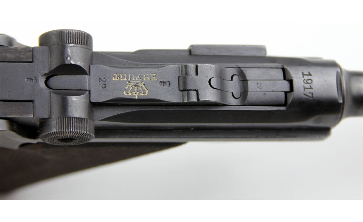 WWI GERMAN ERFURT LUGER ALL MATCHING WITH HOLSTER WWI German P-08 Luger, Marked Erfurt on top, and dated 1917. Proof marks on right side of chamber. All numbers on gun are matching, including magazine. WWII era holster included with gun. Type: Pistol Manufacturer: Erfurt Model: 1908 Caliber / Gauge: 9mm Barrel Length: 3.75" Serial Number: 129 Condition: Very good bore, 90+% bluing, and sharp knurling on grips. Overall very good to excellent condition.