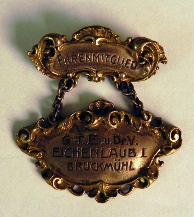 Available is this WWI German Ehrenmitglied (Honorary Member) Medal, with Bruckmuhl (Oak) attached medal. It is in very good shape with the pin clasp intact.