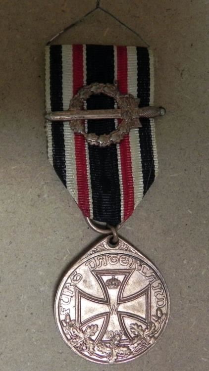 THIS OUTSTANDING MILITARY LEGION OF HONOUR-IRON CROSS-WWI MEDAL WITH RIBBON-AND MILITARY WREATH & SWORD ON RIBBON--MEDAL HAS IRON CROSS (FURG DAGERLAND)-REVERSE HAS ANGEL PLACING CROWN OF LAUREL LEAVES ON SOLDIER.