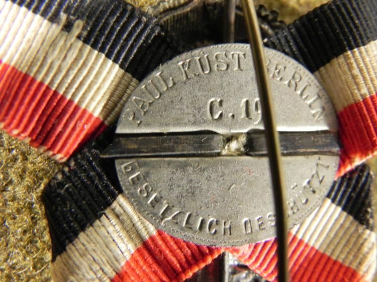 WWI IMPERIAL GERMAN MEDALLION FOR DEUTSCHES KRIEGERBUND WITH IMPERIAL CROWN/RIBBONS * REVERSE MARKED "PAUL KUST-BERLIN-C19-GES GESCHUTZ *