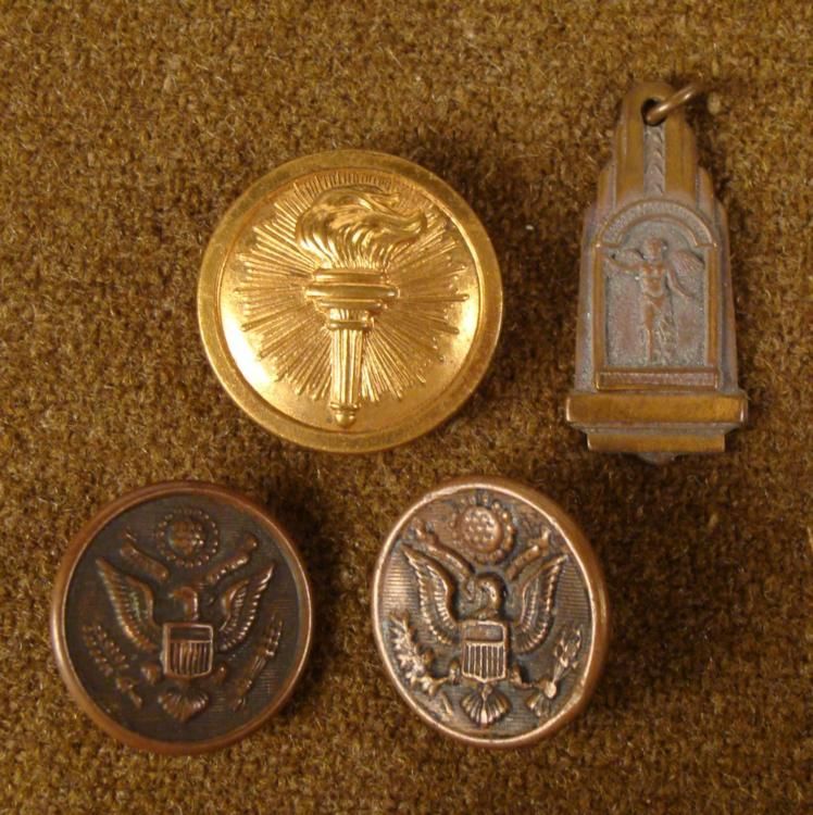 WWI INSIGNIA FROUP-2 DOUGHBOY BUTTONS-BRASS INSIGNIA & LIBERTY MEDALLION * * BUTTONS MARKED-DEVICE SCREWBACK *