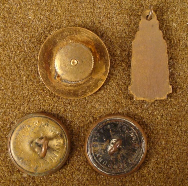 WWI INSIGNIA FROUP-2 DOUGHBOY BUTTONS-BRASS INSIGNIA &LIBERTYMEDALLIONBUTTONS MARKED-DEVICE SCREWBACK