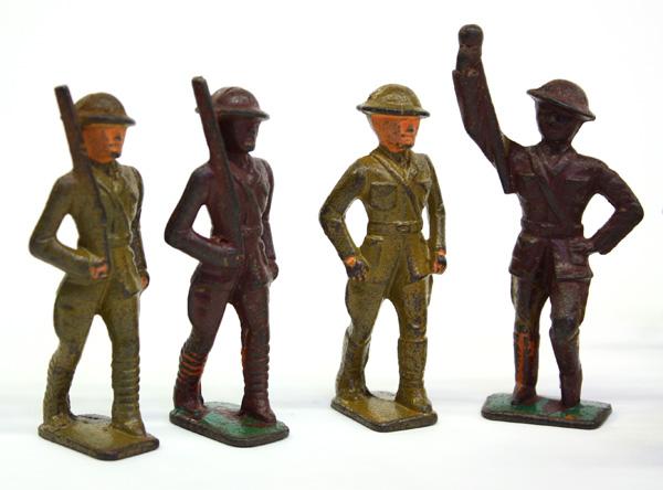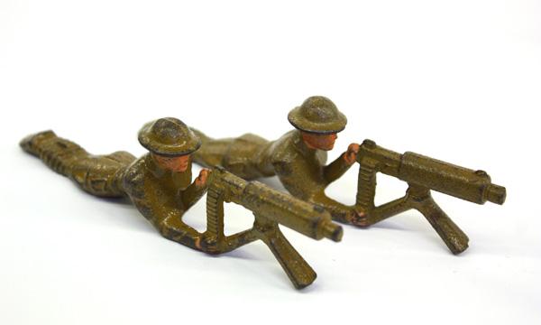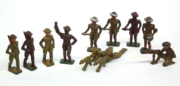 (lot of 11) Vintage World War 1 lead soldiers, in various poses, tallest figure: 3''
