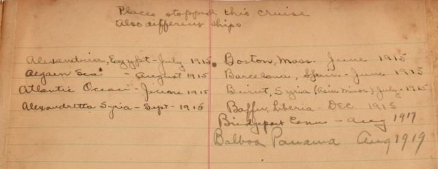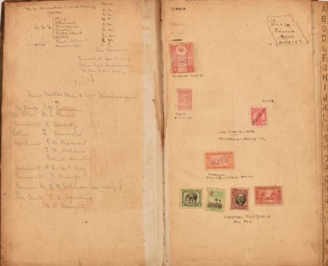 1" x 9" x 14". Countries visited & Stamps.