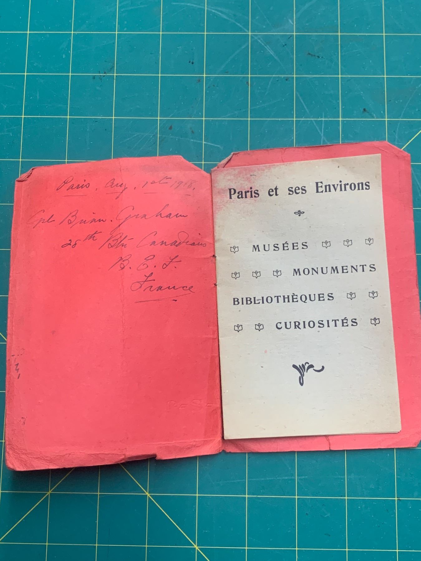 WWI SOLDIER DATED PARIS FRANCE GUIDE 28TH BATTALION