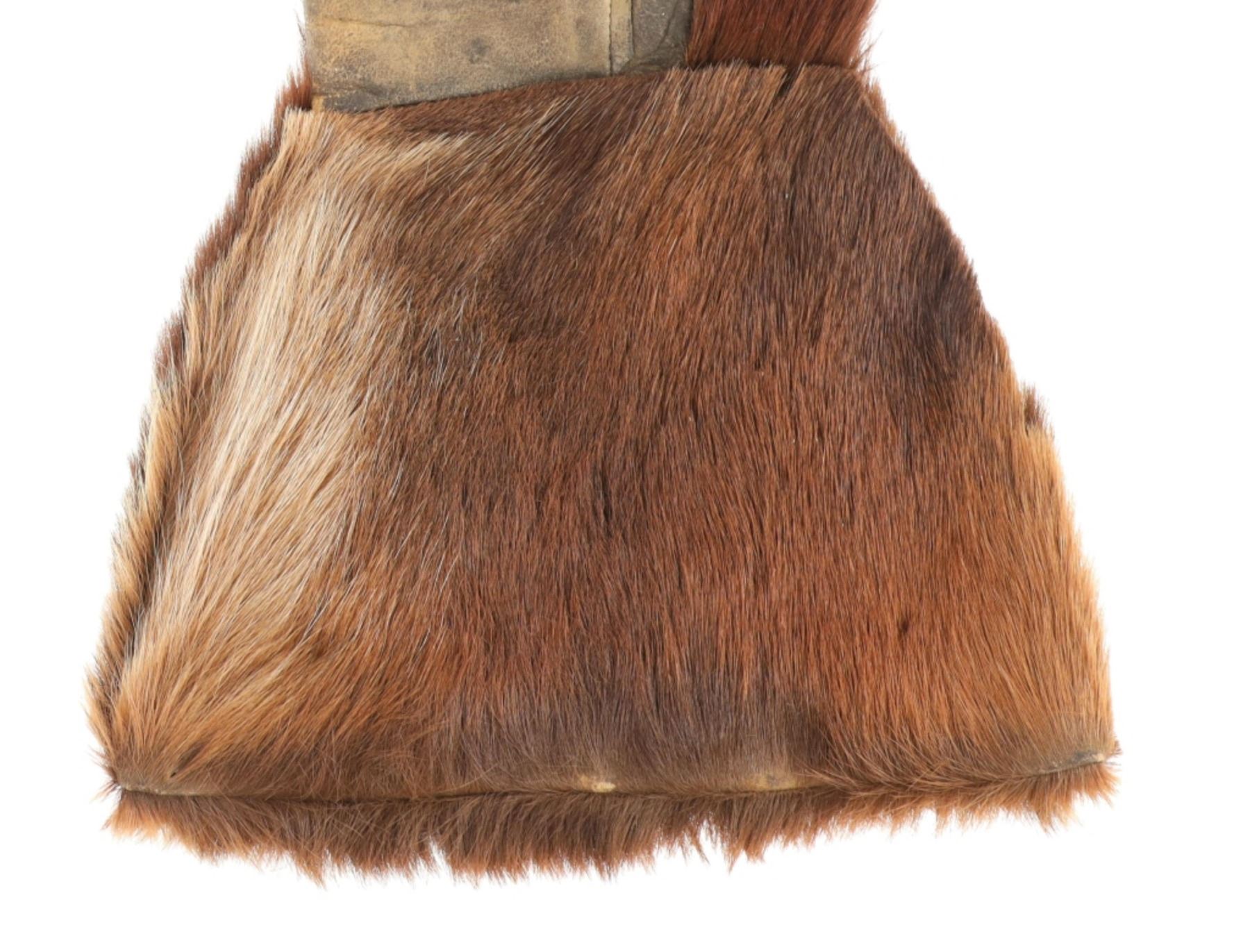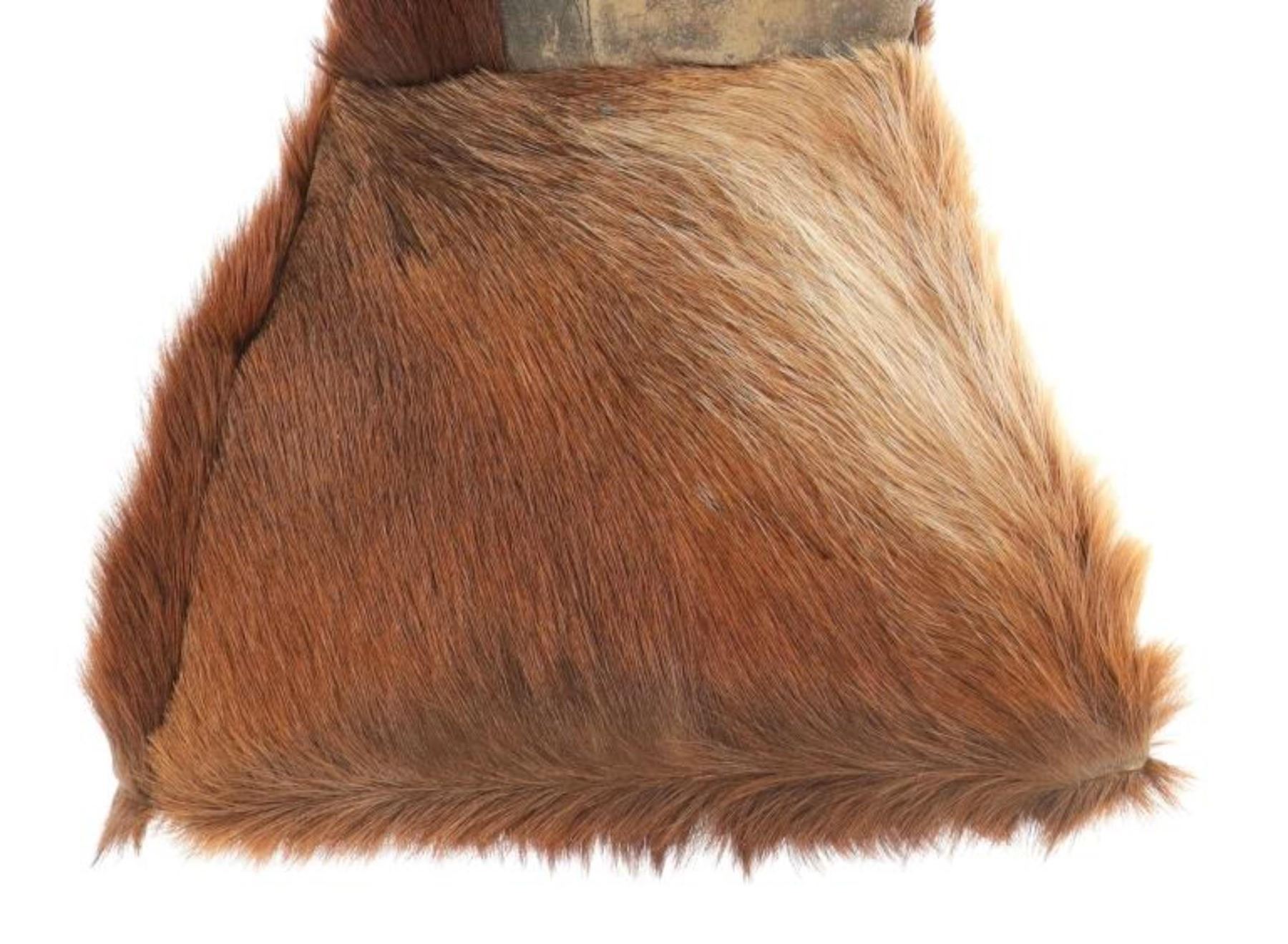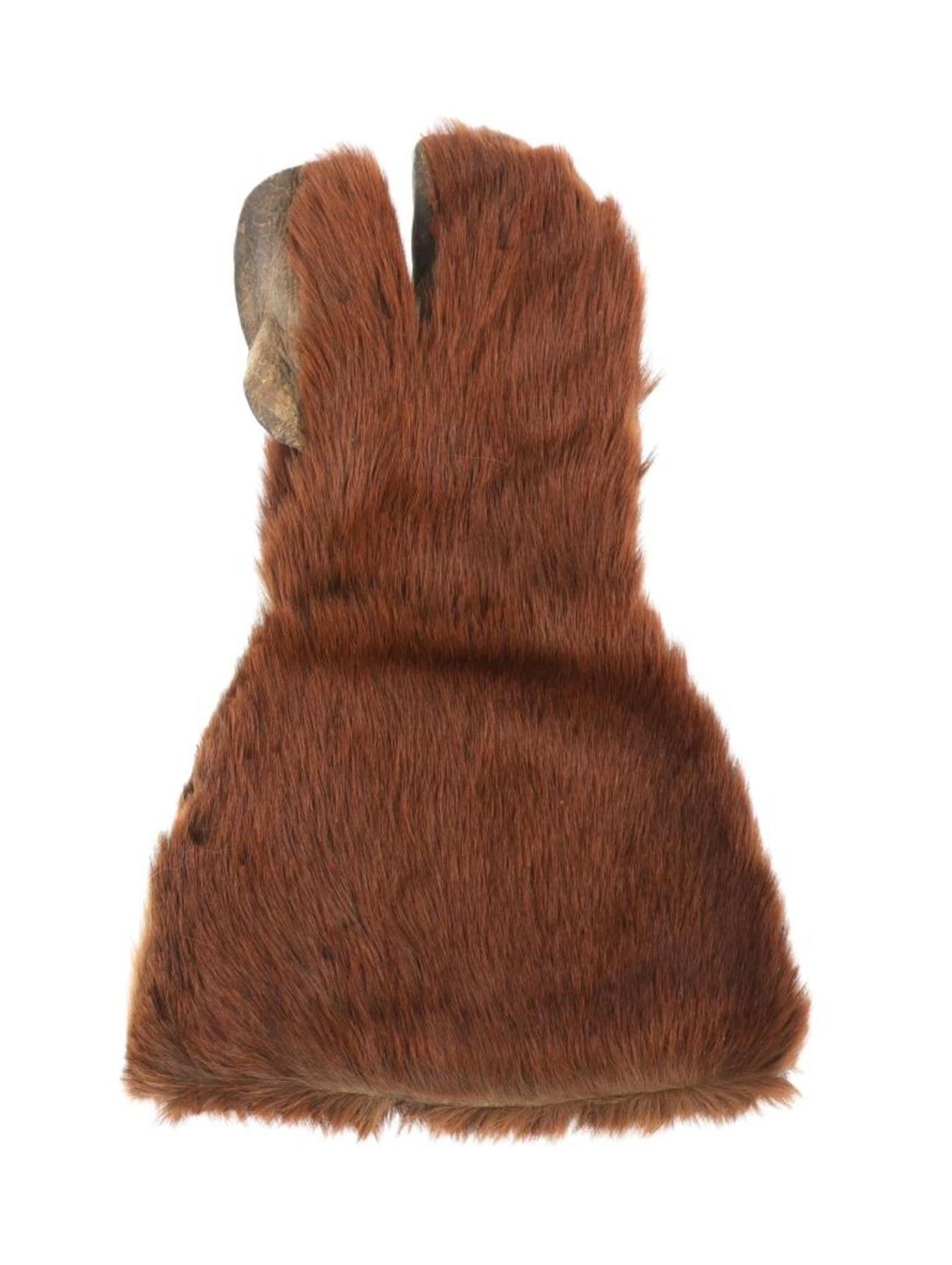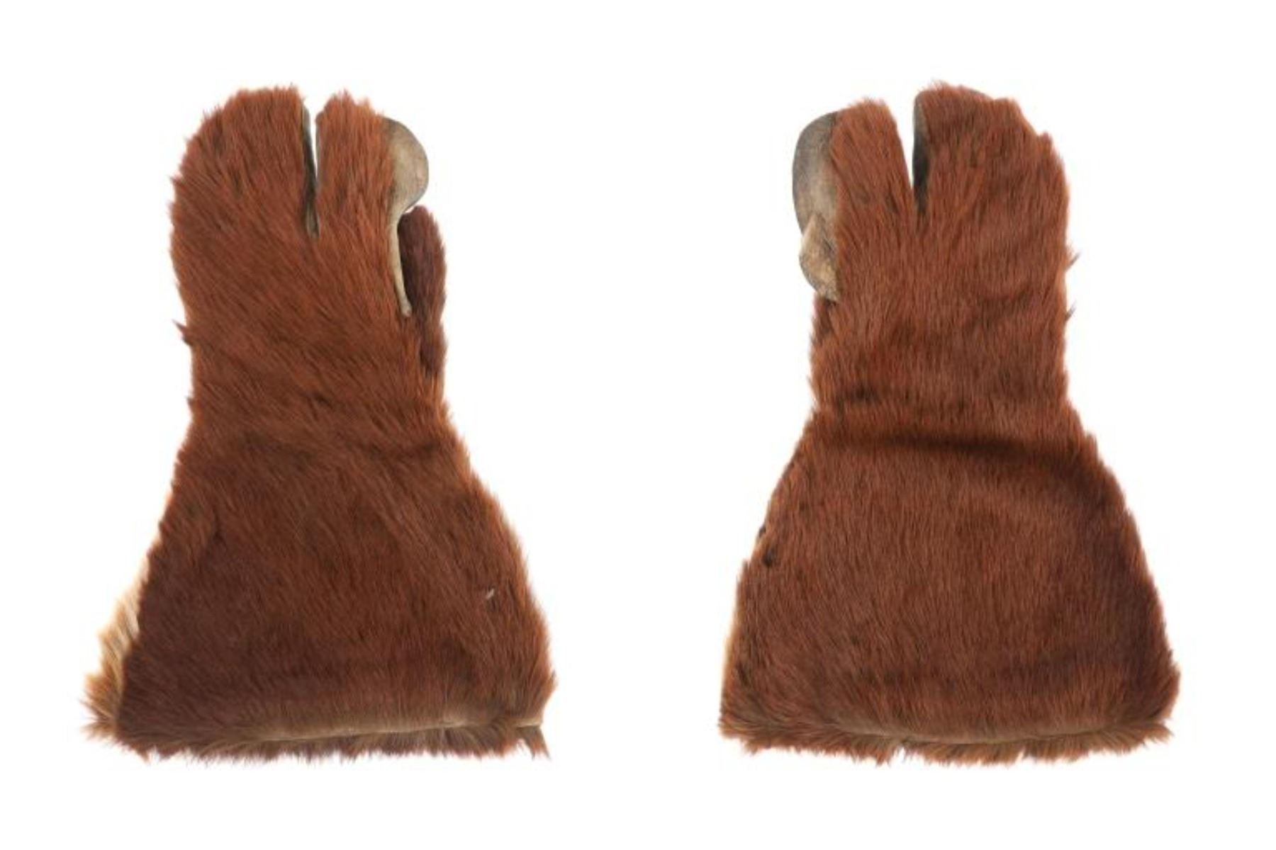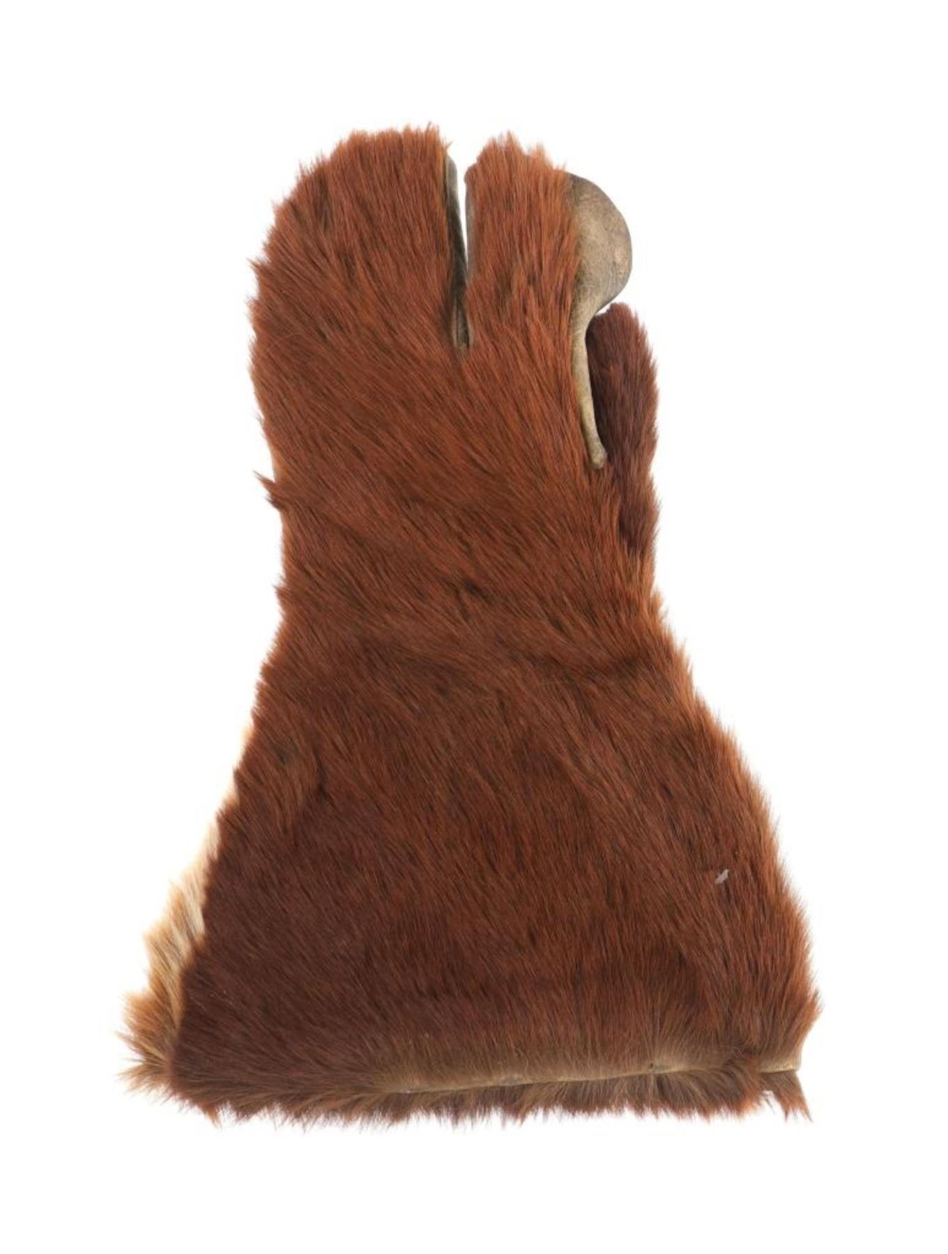 Featured in this lot is this WWI trench infantry hide gauntlets circa 1910 to 1920's. The gauntlets feature a wonderfully and professionally crafted bear hide construction that shows a split mitten design that frees up the trigger finger. The bear hide shows a reddish brown coloration with flaps of leather to protect. from the cold and re loading. The condition of this pair of WWI Infantry gauntlets is well preserved that shows some wear to the leather palm portion of the gauntlets. The gauntlets measure 14 3/4" x 10 1/4". The collective weight of this pair of gauntlets is 1lb 4oz.