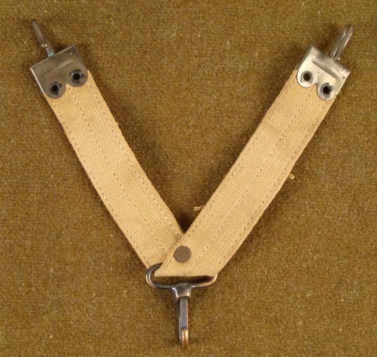 WWI U.S. CANVAS & METAL SWORD HANGER-MARKED ROCK ISLAND ARSENAL-1905 * MINT-TENSION CLIP ON TOP & HOOK APPARATUS ON BOTTOM IN AN INVERTED V FORM *