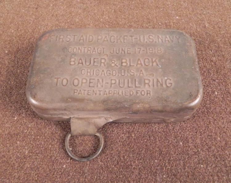 OFFERED HER IS A RARE ORIGINAL WWI U.S. NAVY FIRST AID METAL KIT-UN-OPENED- BAUER &BLACK-1918