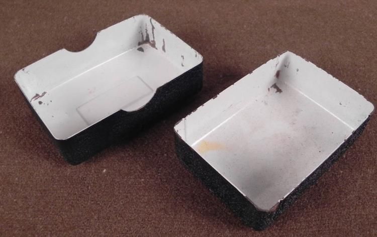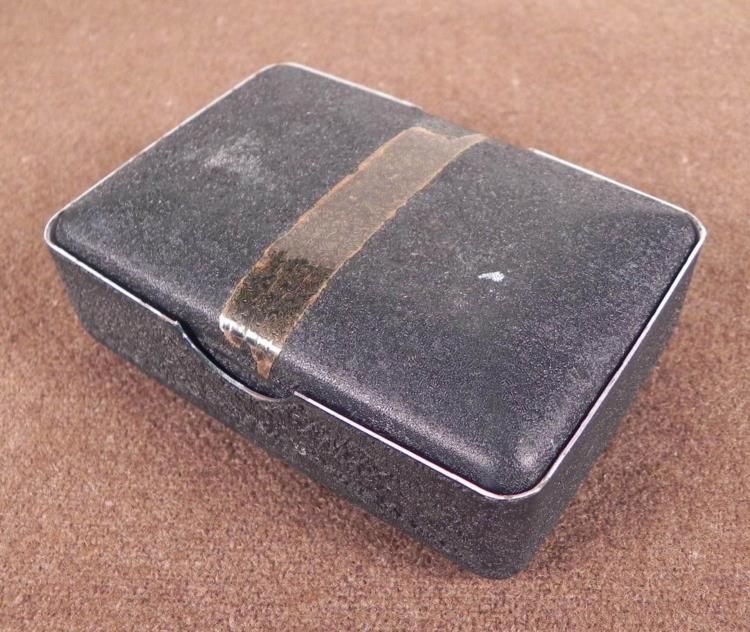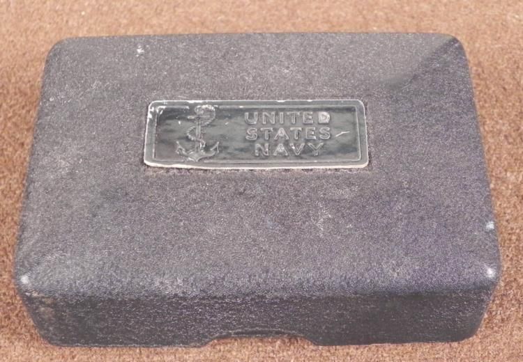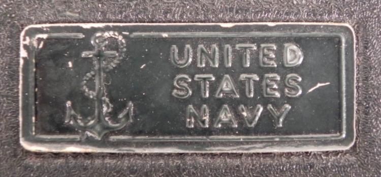 WWI U.S. NAVY LARGE CRINKLED BLACK METAL SOAP CONTAINER * TOP READS "UNITED STATES NAVY" WITH AN ANCHOR