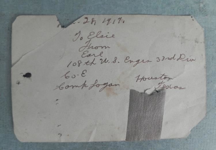 WWI U.S. PHOTO W/INSCRIPTION FROM 1917 & EQUIP CANVAS CARRIER MKD" RIA 9-1919 PHOTO 3X5--HEAVY CANVAS SNAP CLOSED EQUIPMENT CASE MARKED ROCK ISLAND ARSENAL-1919-CASE IS:9X5"-WITH WEB BELT CONNECTION