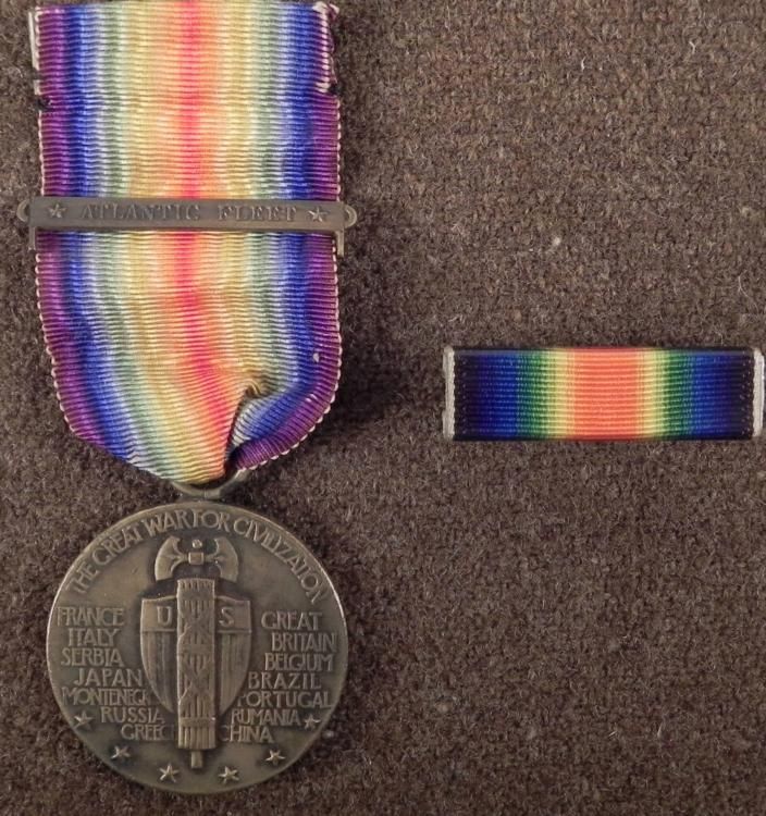 OFFERED HERE IS AN ORIGINAL WWI U.S. VICTORY MEDAL & RIBBON BAR- ATLANTIC FLEET BAR. THIS IS A GREAT WAR FOR CIVILIZATION MEDAL. *
