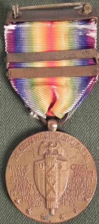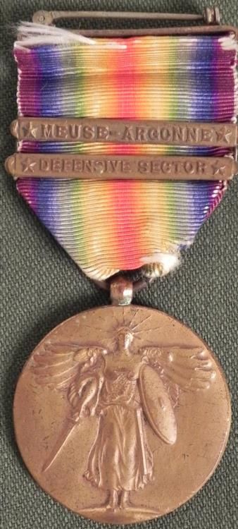 WWI U.S. VICTORY MEDAL WITH 2 BARS--MEUSE-ARGONNE & DEFENSE SECTOR * PIN BACK *