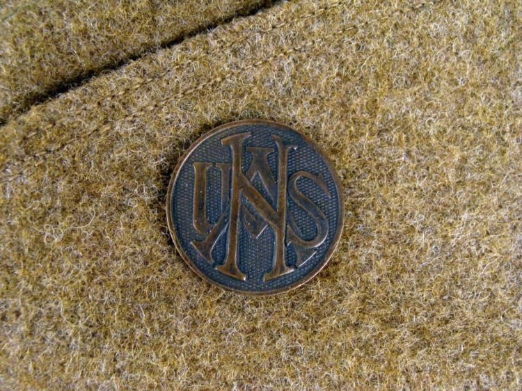OFFERED HERE IS A WWI U.S. WOOL OVERSEAS CAP FOR DOUGHBOY. ON THE FRONT IS A BRASS DISC THAT READS "NA-US" NATIONAL ARMY. THE BRASS USED FOR THE DISC IS HARD TO COME BY BRASS. ON THE INSIDE OF THE CAP IS THE SIZE, 6 3/4. THERE IS ALSO THE MAKER'S & QM STAMP ON THE INSIDE AS WELL. IT IS IN EXCELLENT CONDITION. *