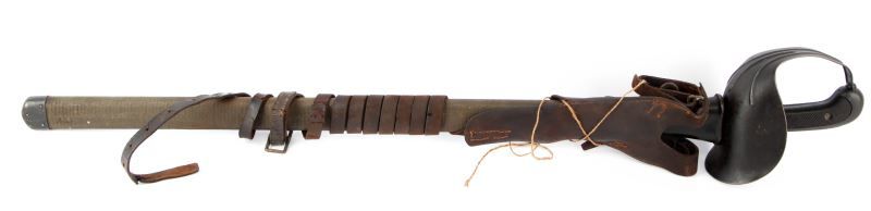 WWi US Army Cavalry Saber Patton Sword LF&C 1918 with scabbard. Scabbard measures approximately 42 inches in length and features some oxidation to the blade. Blade is marked "US NO13, LF&C 1918." Scabbard has some wear and show of age to it's leather. Overall in good to very good condition.