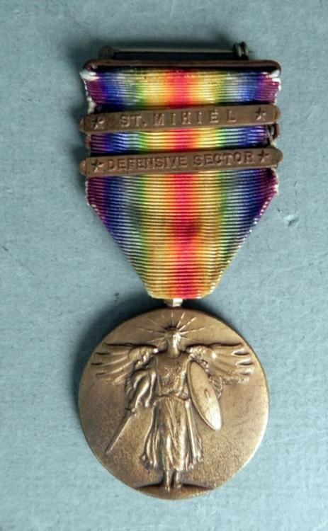 WWI U.S. VICTORY MEDAL W/ST. MIHIEL & DEFENSE SECTOR BARS---VG CONDITION