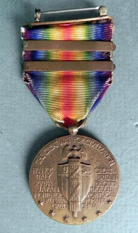 WWI U.S. VICTORY MEDAL W/ST. MIHIEL & DEFENSE SECTOR BARS---VG CONDITION