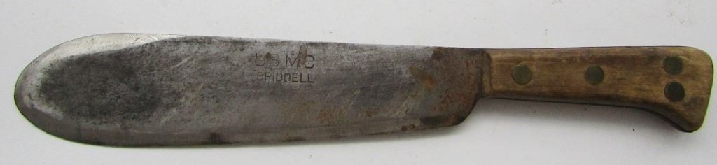 BOLO MACHETE. NO SCABBARD. NEEDS A LIGHT CLEANING. 16.5" TOTAL LENGTH.