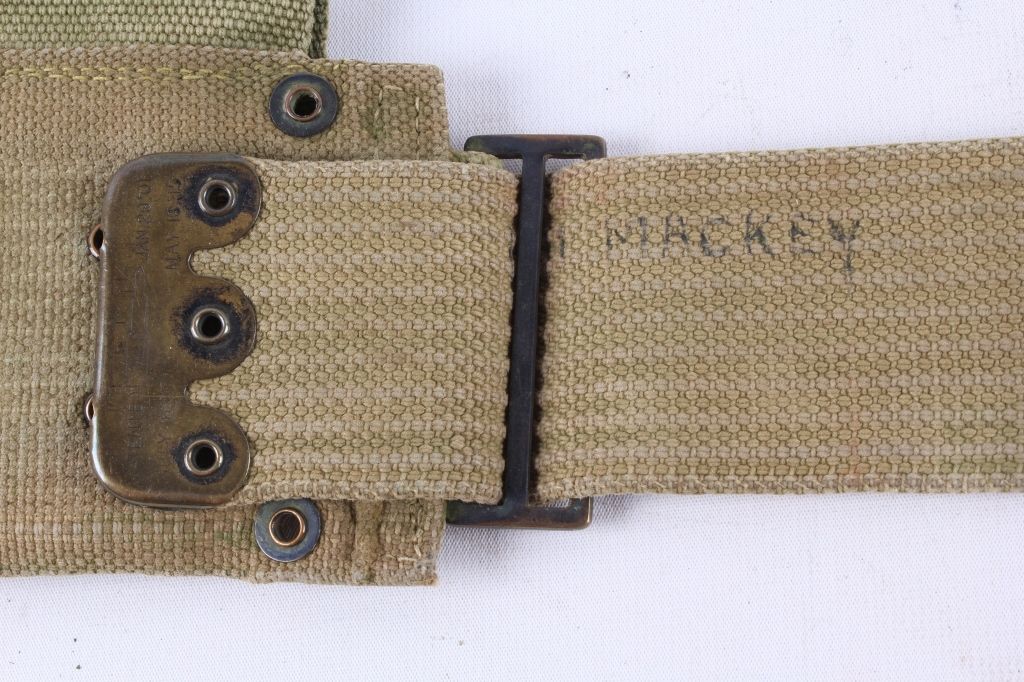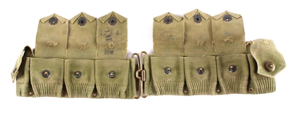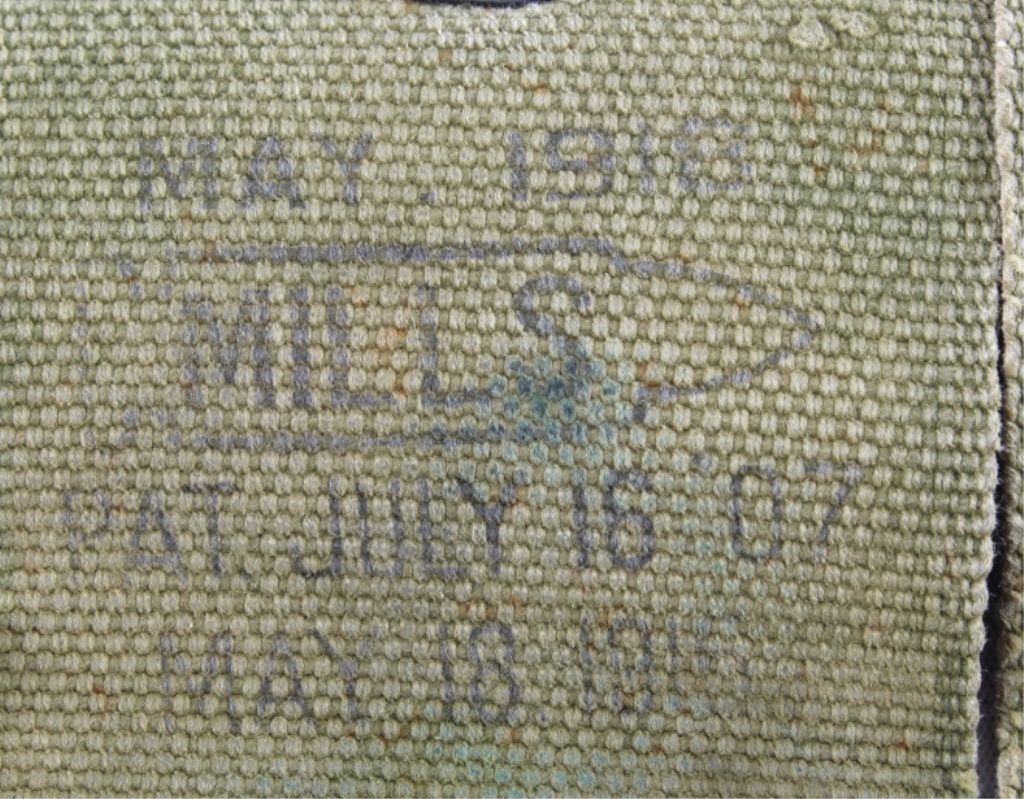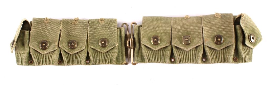 This is a World War I United States Marine Corps Mounted Cartridge Model 1914 Belt by Mills. The rare belt shows the clear mills stamping and is not seen in the USMC often. Measures 4.5" wide and 44.5" long.