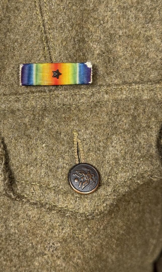 32nd Infantry Division patch. Signal Corps collar discs. WW1 Victory Ribbon. 18" across the chest by 25" long.