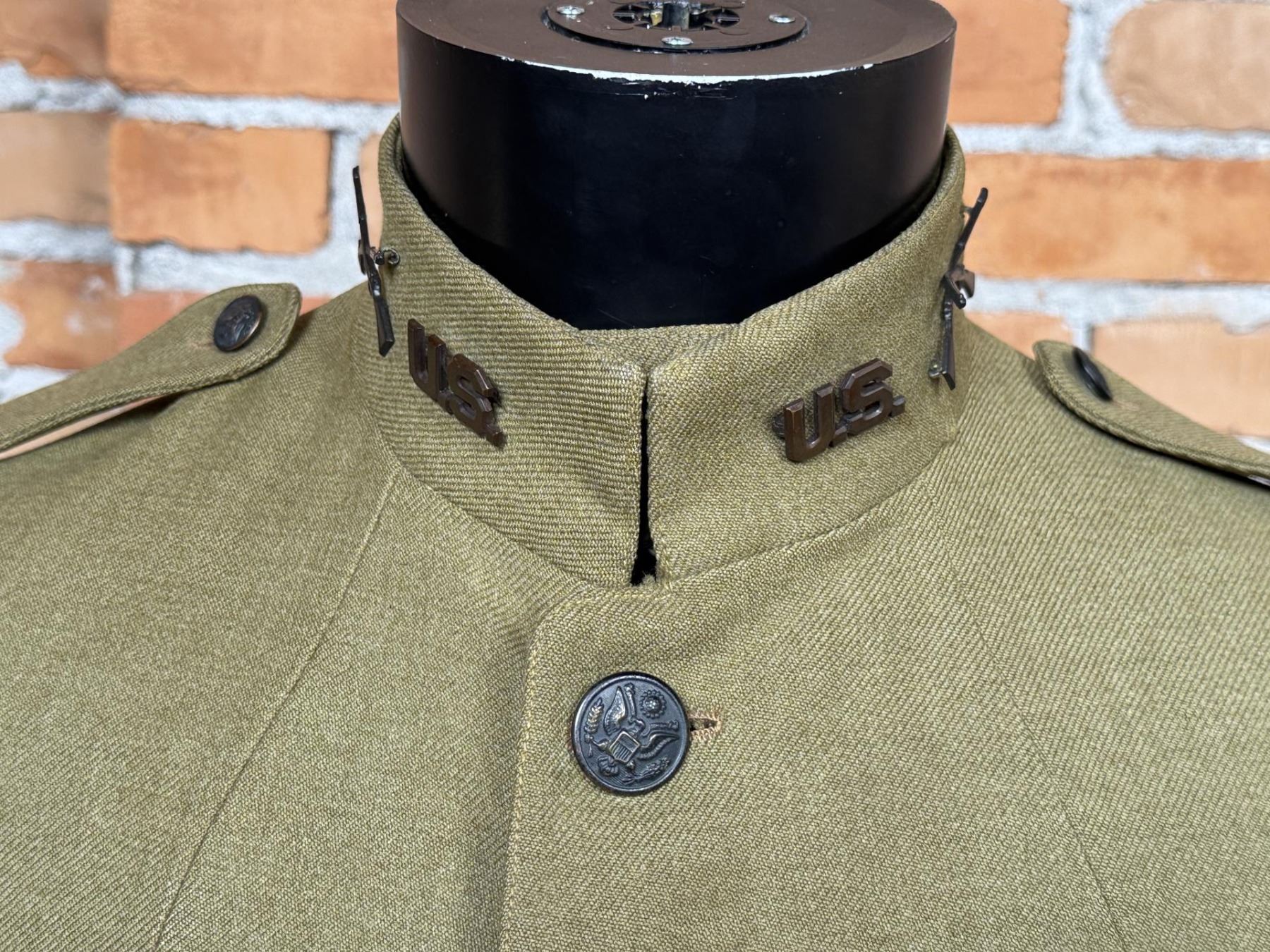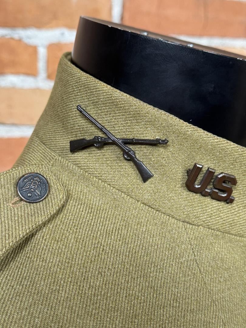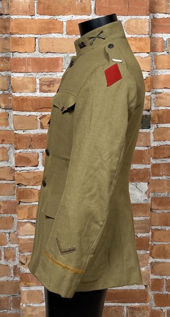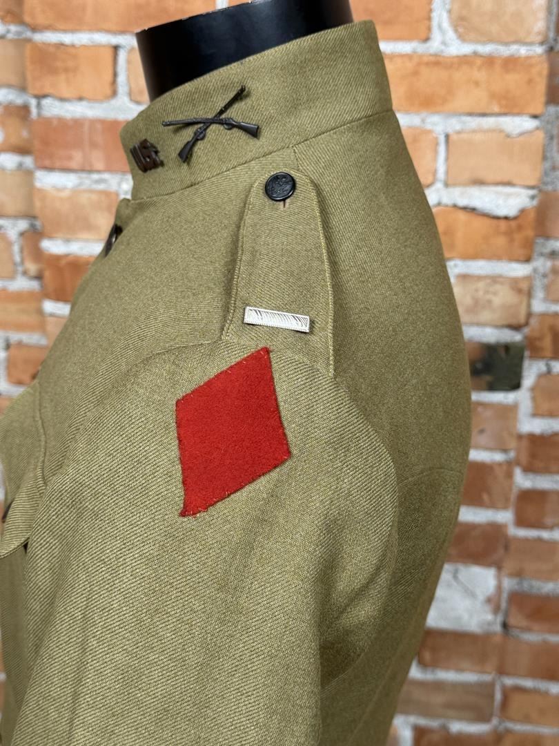 Jacket 5th Infantry Division patch. Private Purchase, Tailored Uniform. Infantry collar devices. First Lieutenant rank. 20" across the chest by 29" long.
