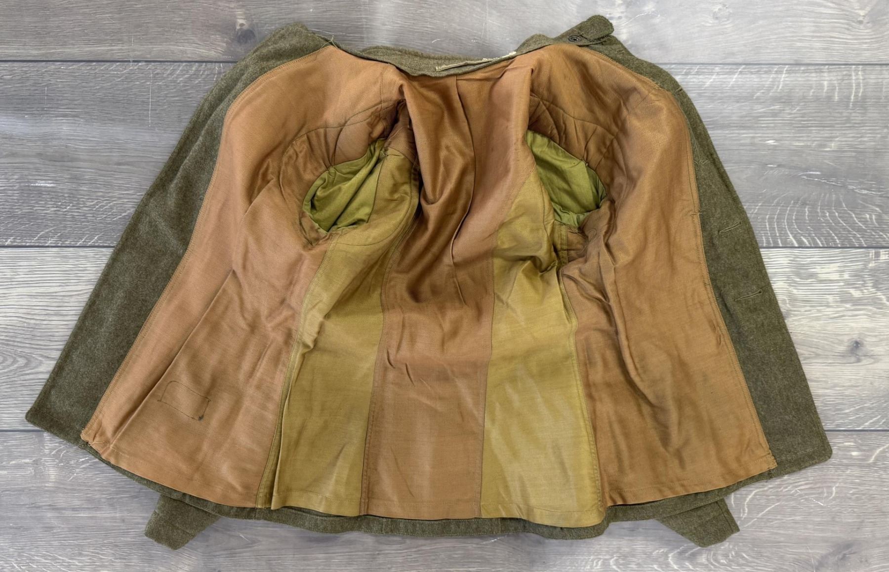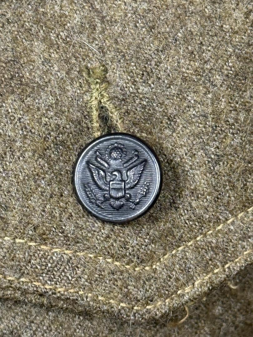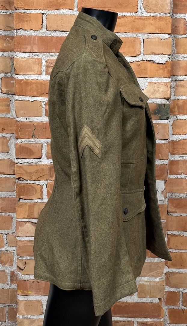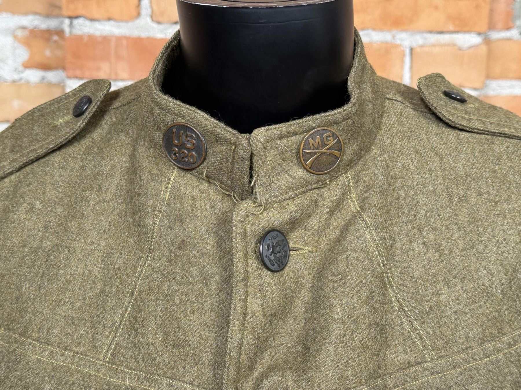 US Army Uniform Jacket. All American 82nd Infantry Division patch. Infantry Machine Gunner collar discs. 17" across the chest by 27" long.