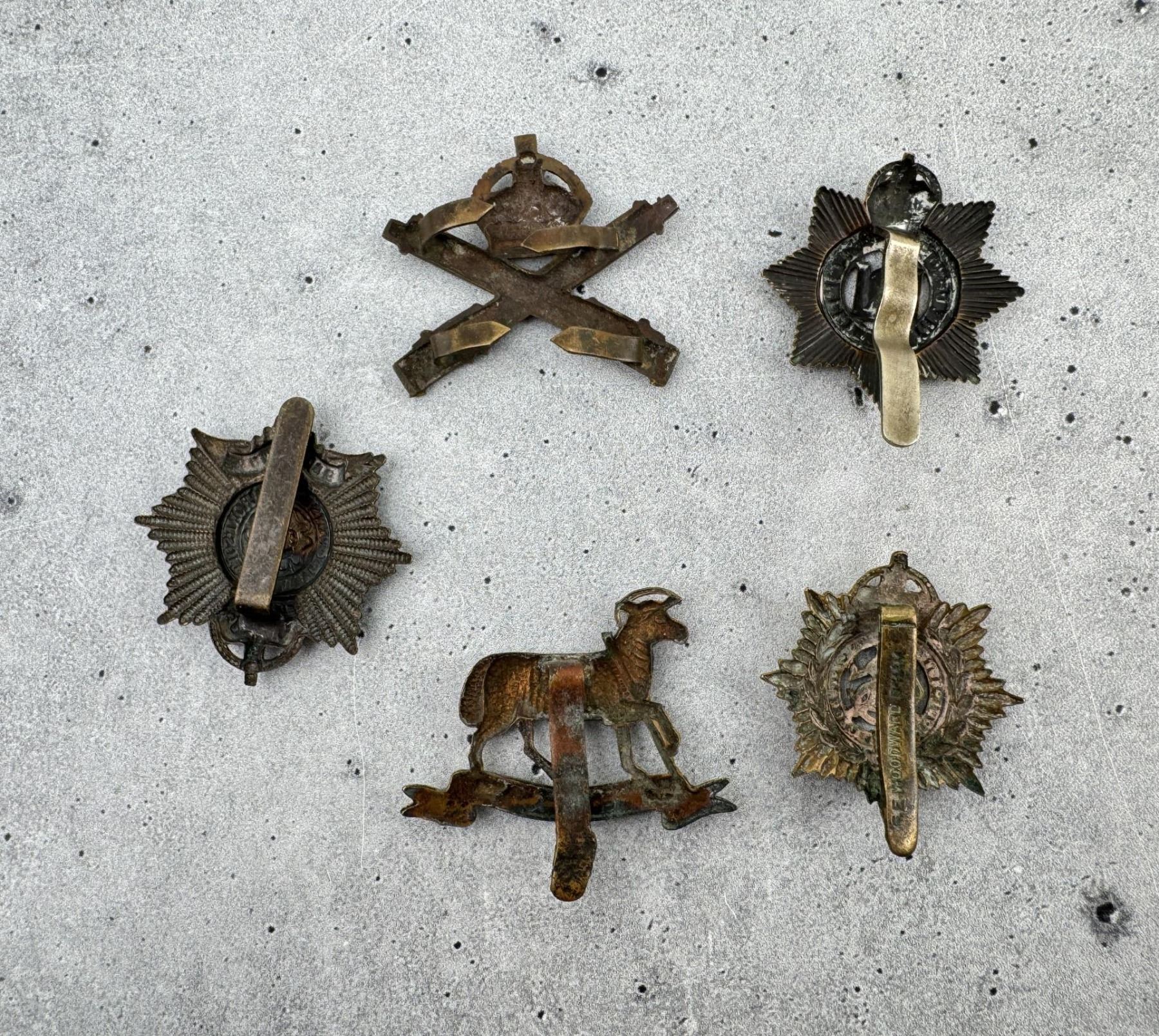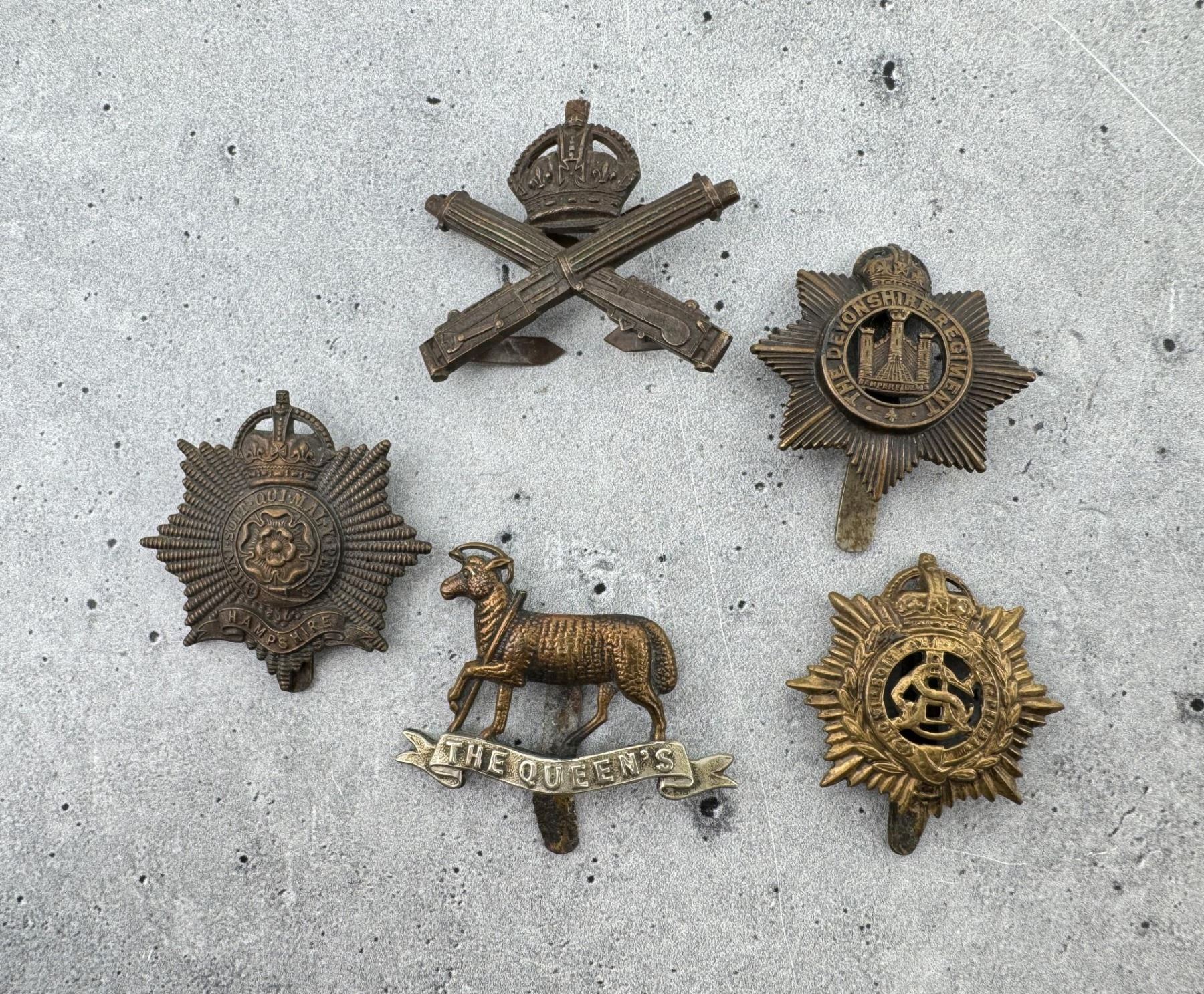 Nice grouping of cap badges. One from the British Machine Gun Corps.