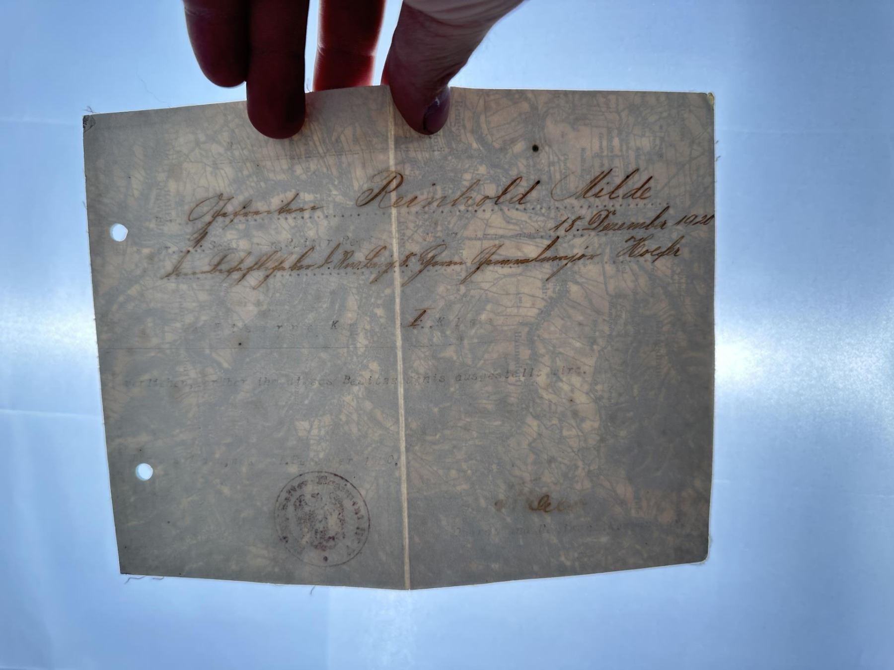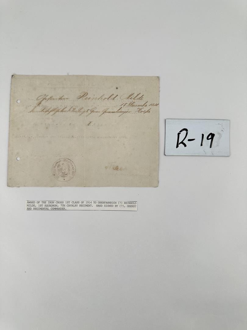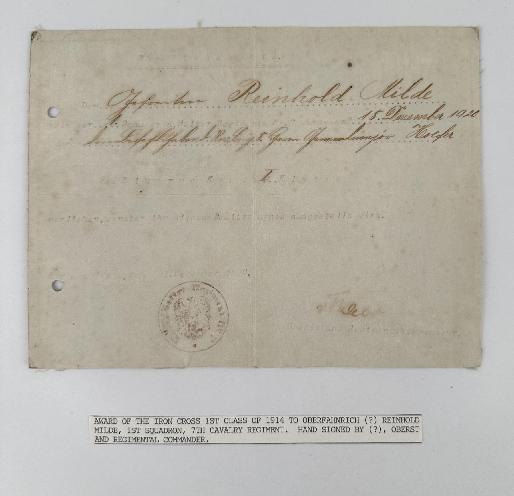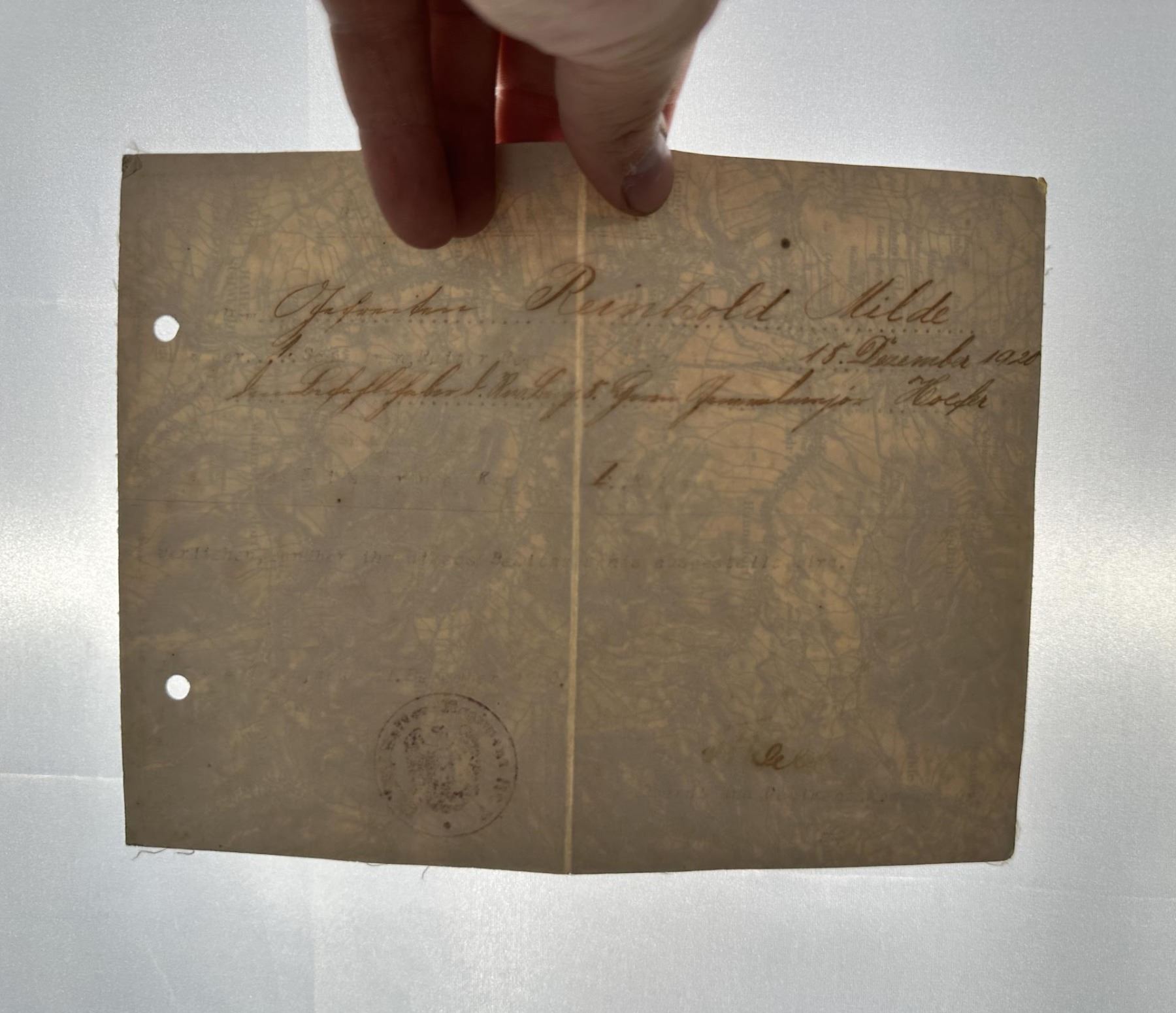 Oberfanrich Reinhold Milde, 1st Squadron, 7th Cavalry. Printed on recycled linen map.