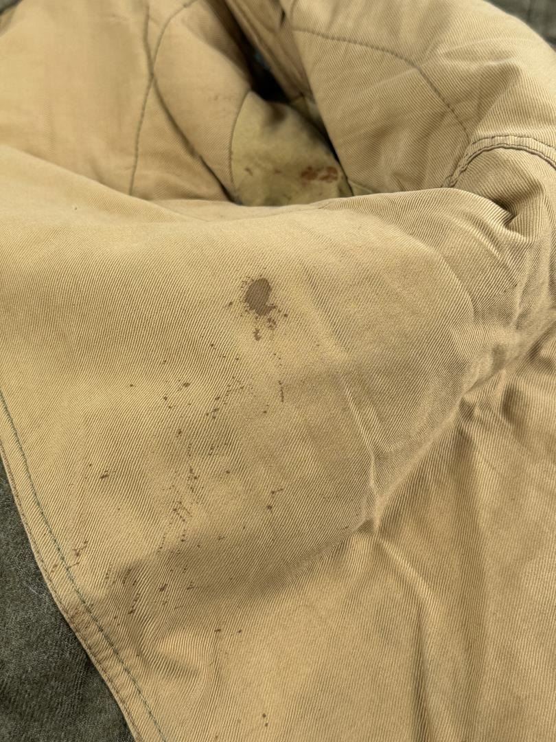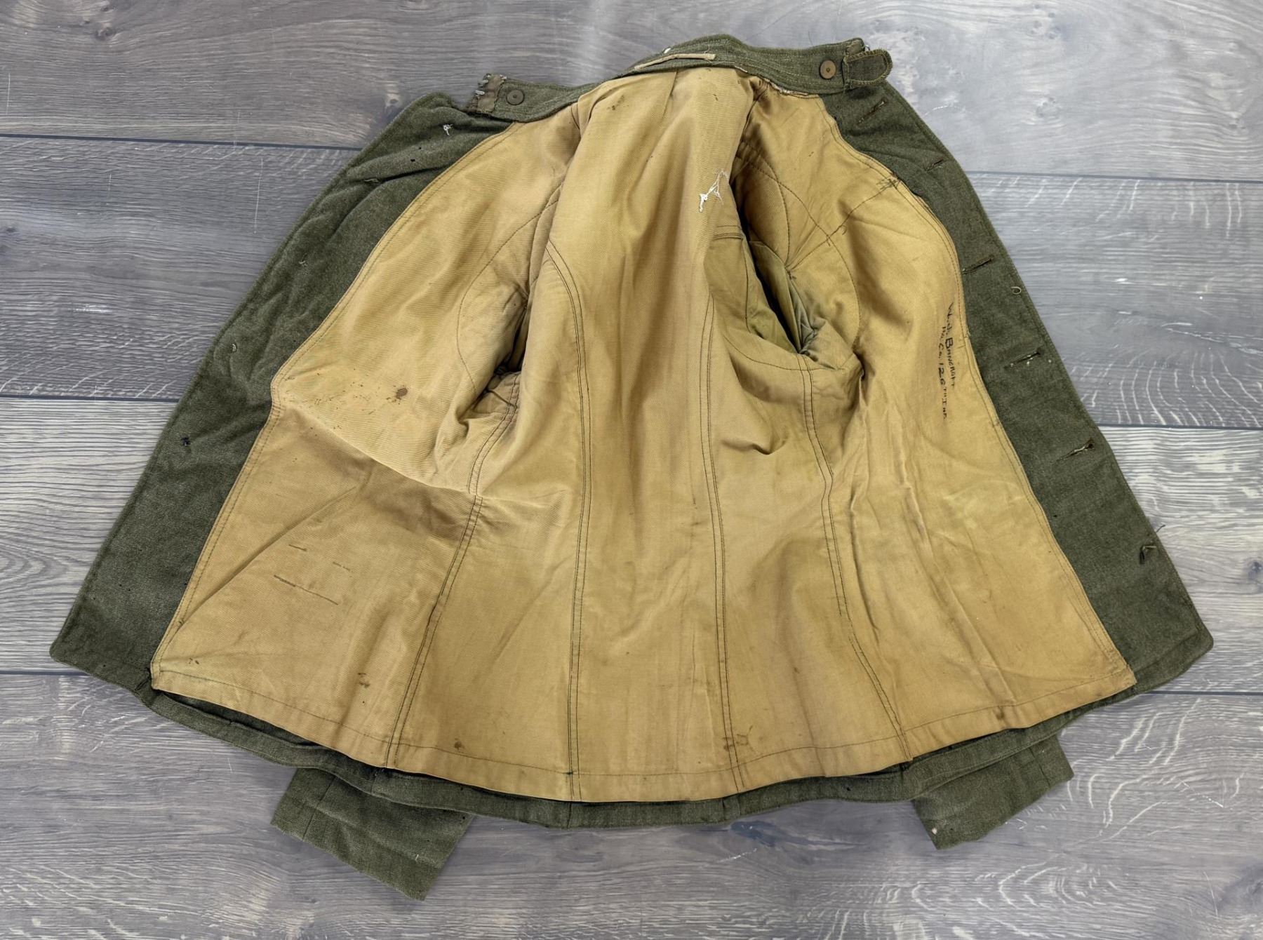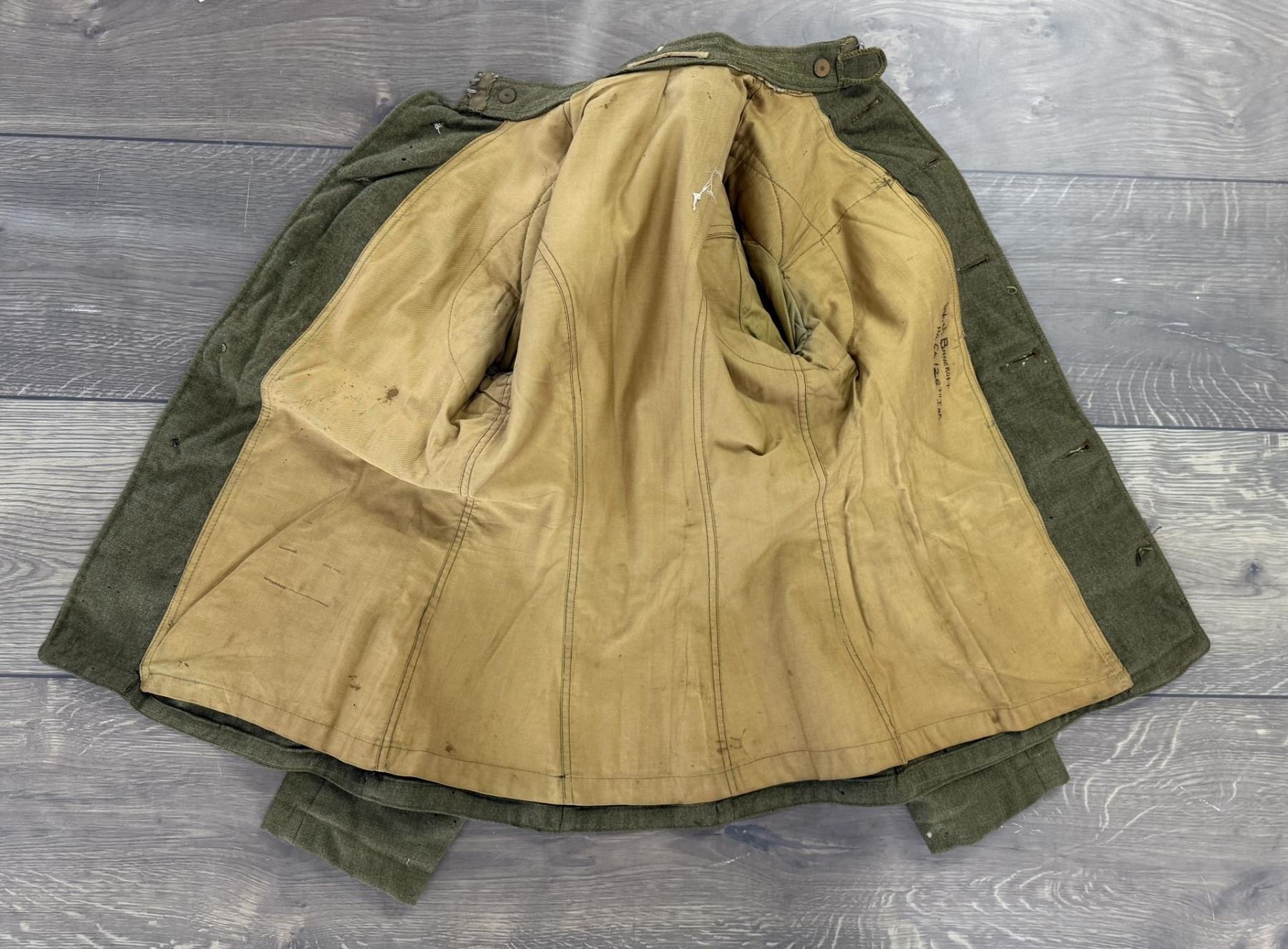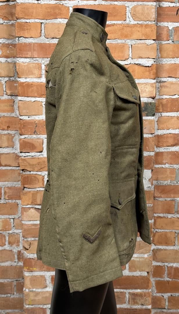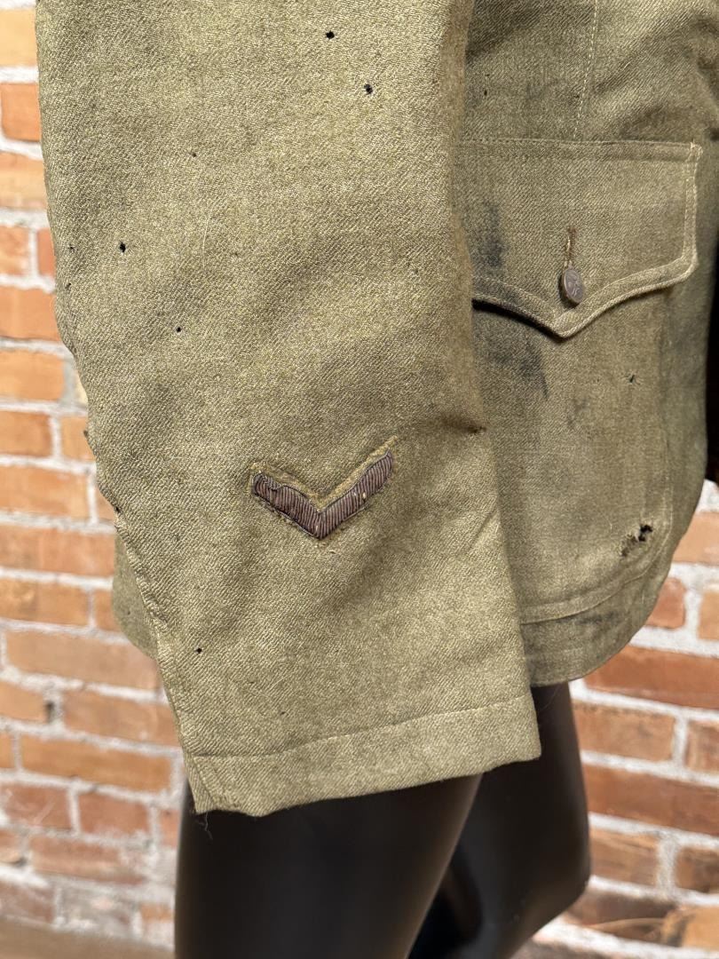 32nd Infantry patch. Michigan Infantry collar discs. Soldier named. 16" across the chest by 27" long. Extensive insect damage.