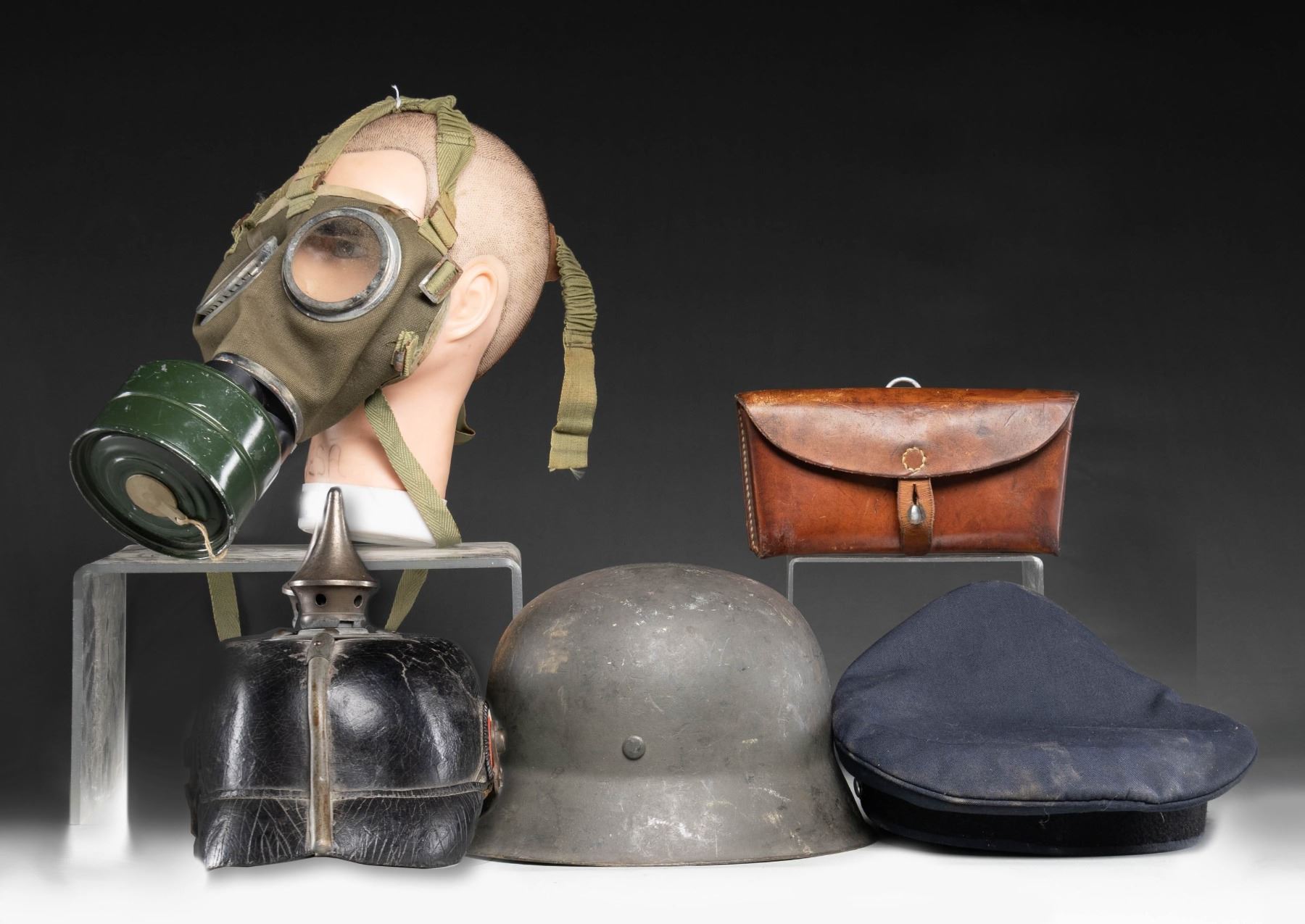 WWI & WWII GERMAN HEAD GEAR, GAS MASK, AND MORE.