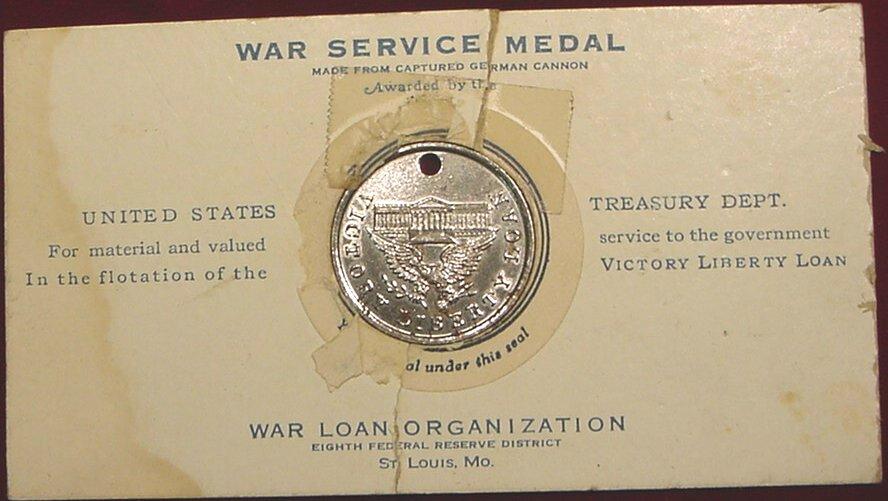 WWI War Service Medal. Made from Captured German Cannon, Awarded by the US Treasury Dept.