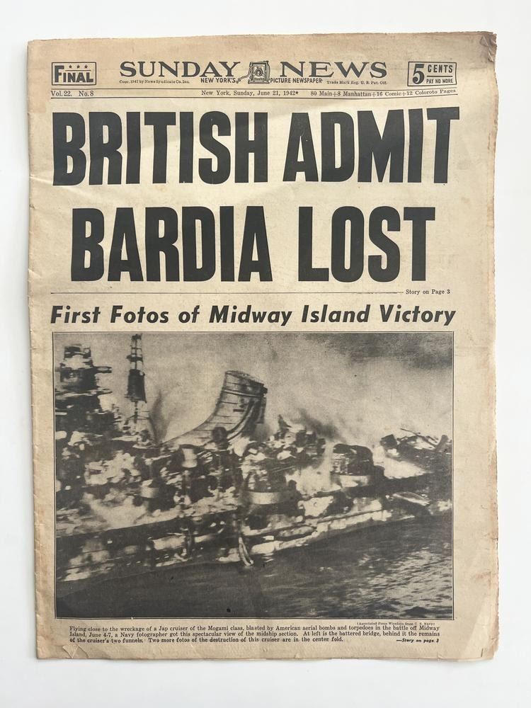 WWII 1942 Sunday News newspaper - New York, Sunday June 21st 1942 - British Admit Bardia Lost. 12x15 inches