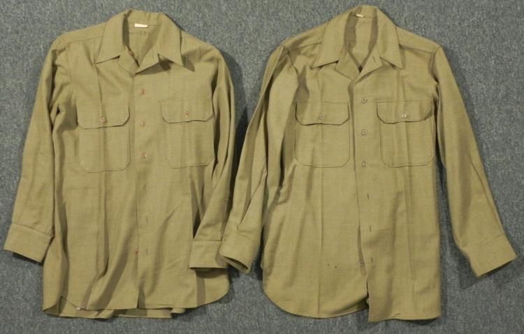 WWII 1943 WOOL FLANNEL FIELD COMBAT SHIRTS-15/33 & 15 1/2/33 * 1 HAS A QM TAG DATED & MADE BY AJAX MFG CO *